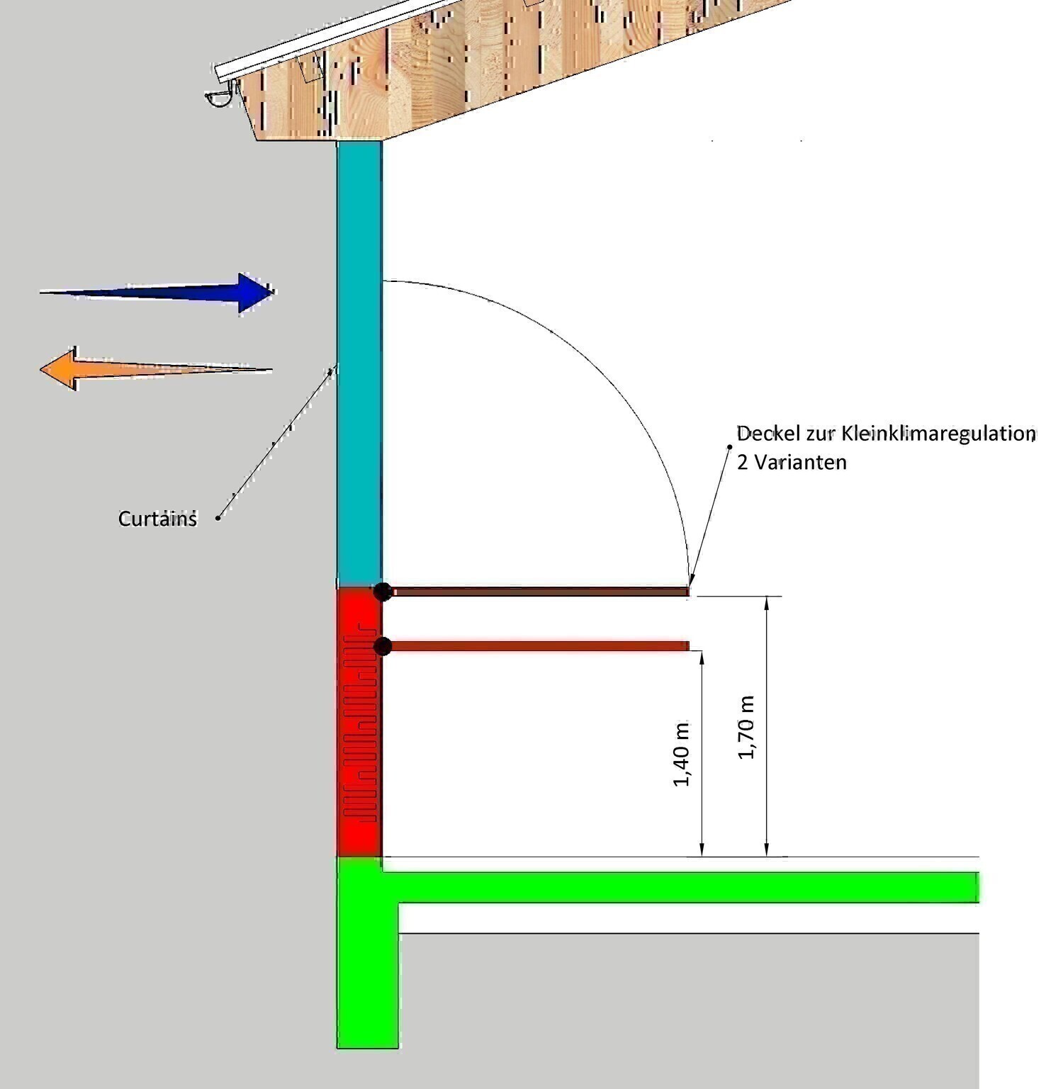 Die Liegebereichsabdeckung zur Schaffung eines Mikroklimas ist transparent.