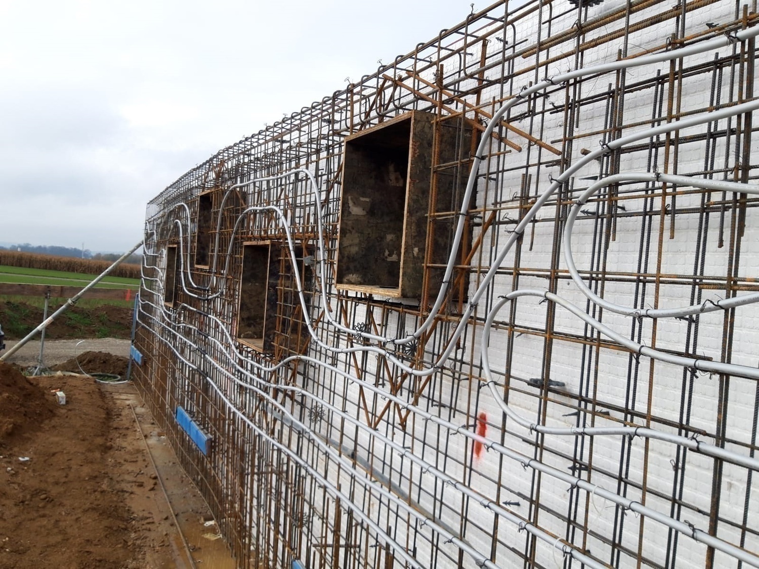 Die Wand im Liegebereich ist beheizbar. Dazu wurden Schläuche in der Betonwand verlegt, durch die Warmwasser geleitet wird.