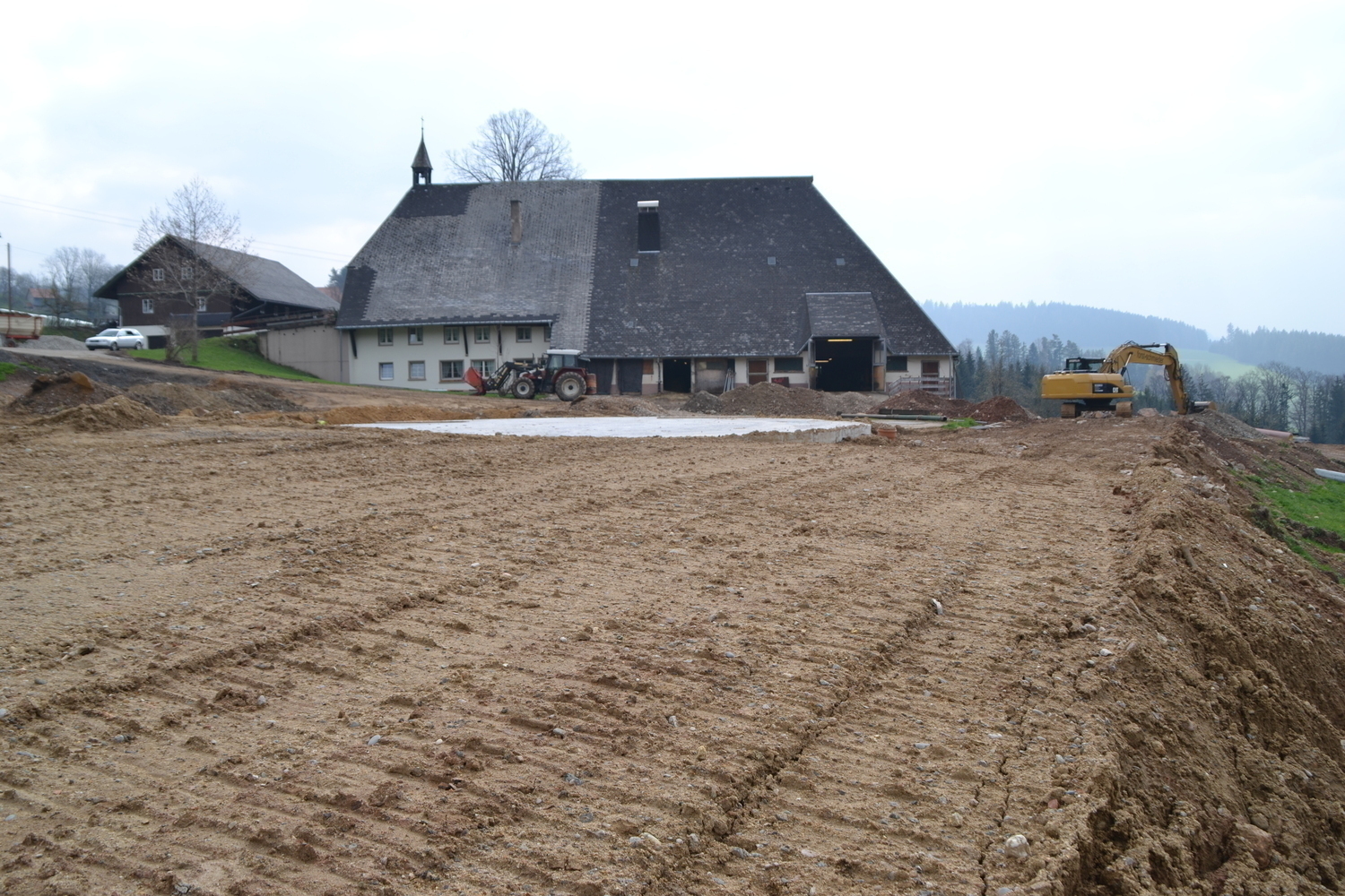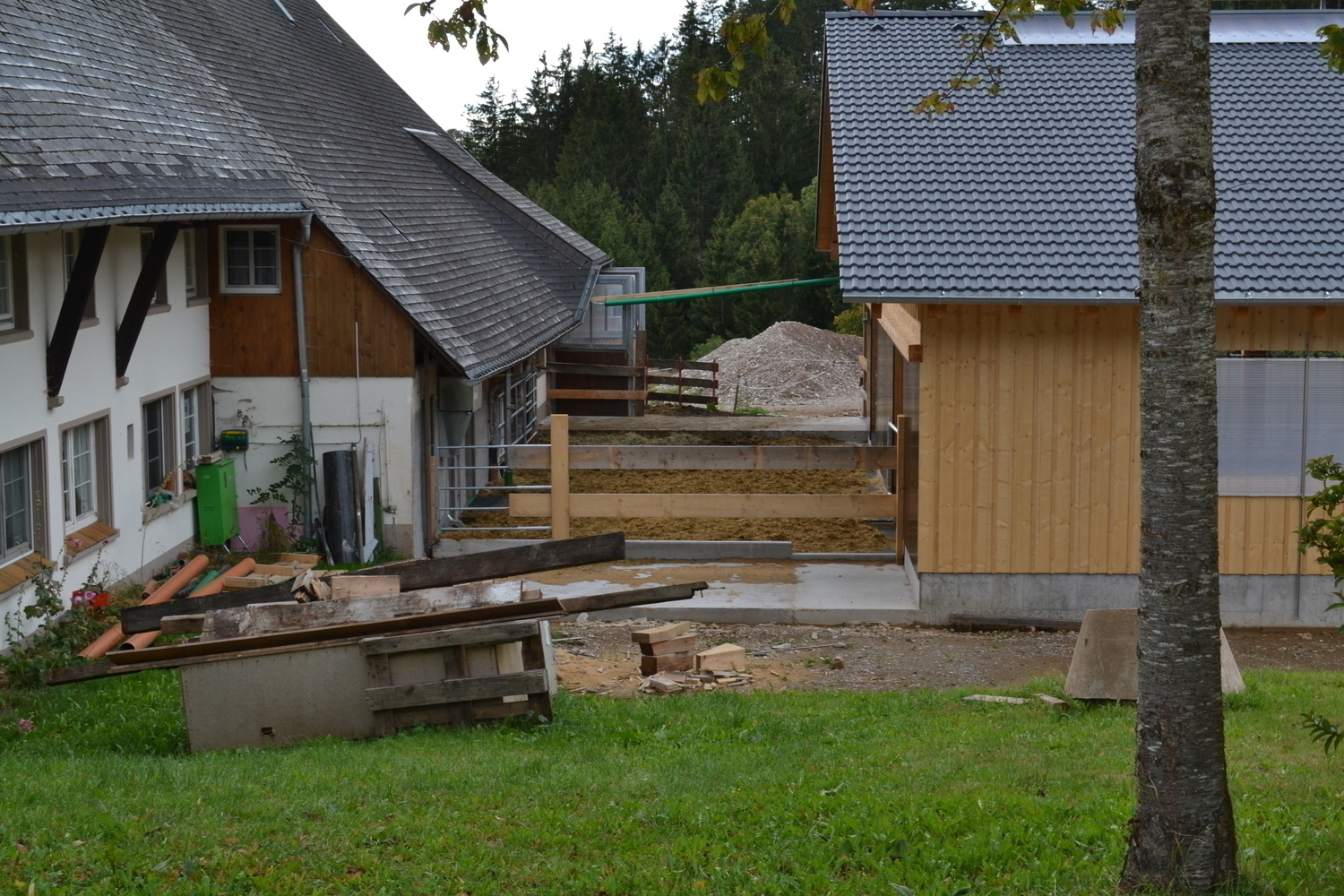 Hackschnitzellaufhof zwischen Alt- und Neugebäude