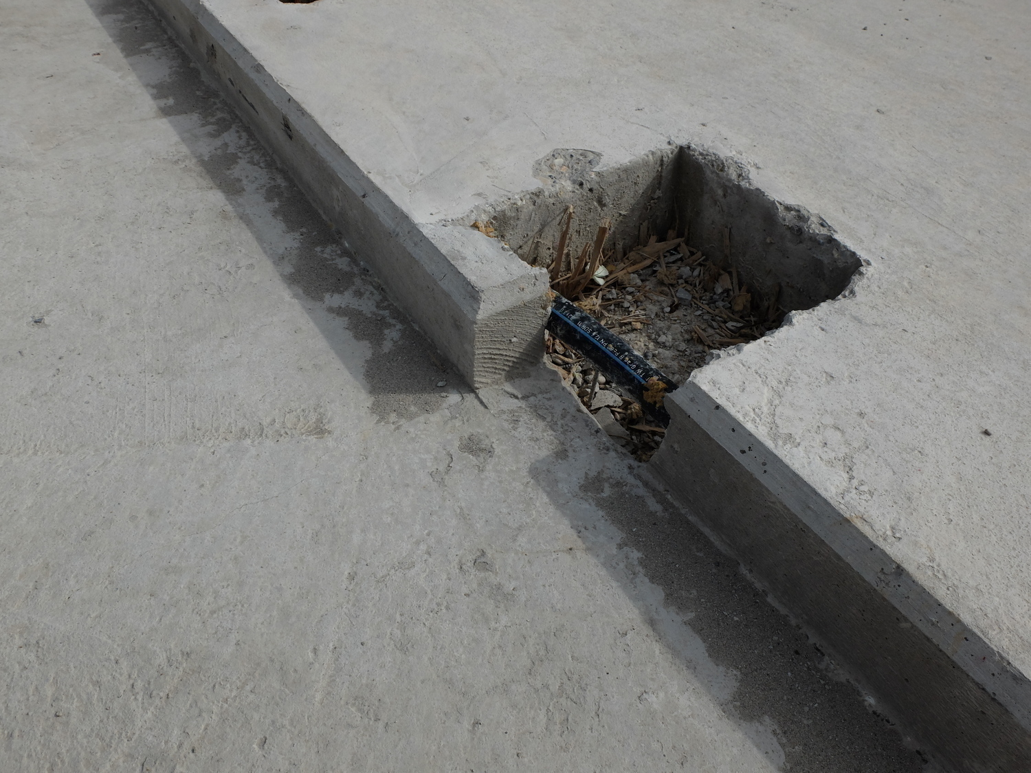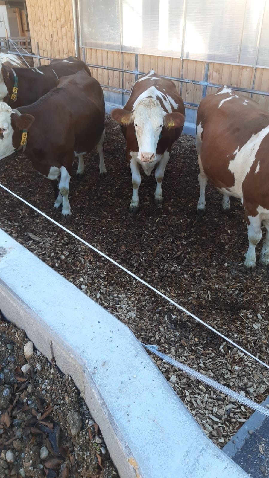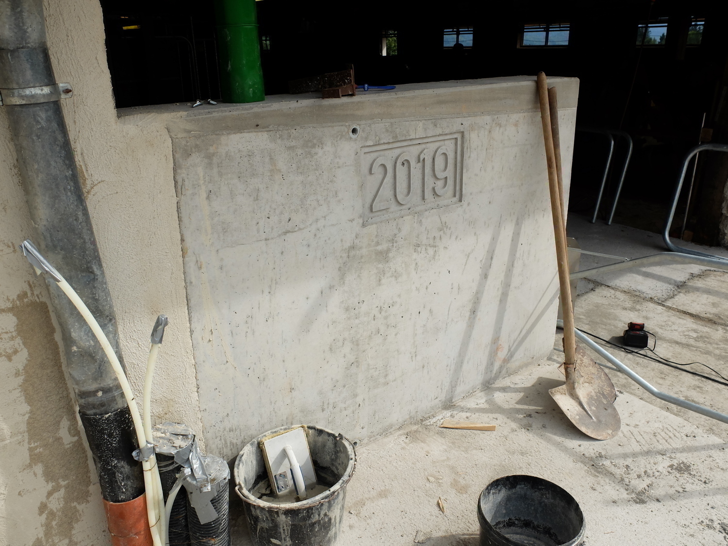 Laufflächenbefeuchtung: Dazu wurde ein PE-HD Rohr direkt in die Kante des Fressstands einbetoniert und mit Löchern versehen