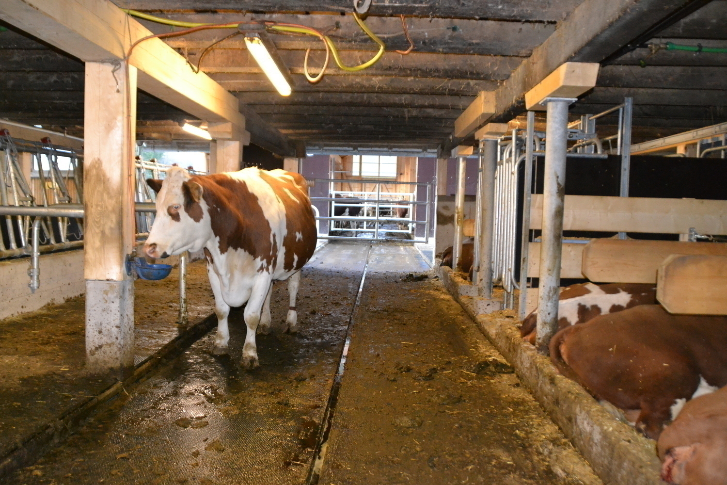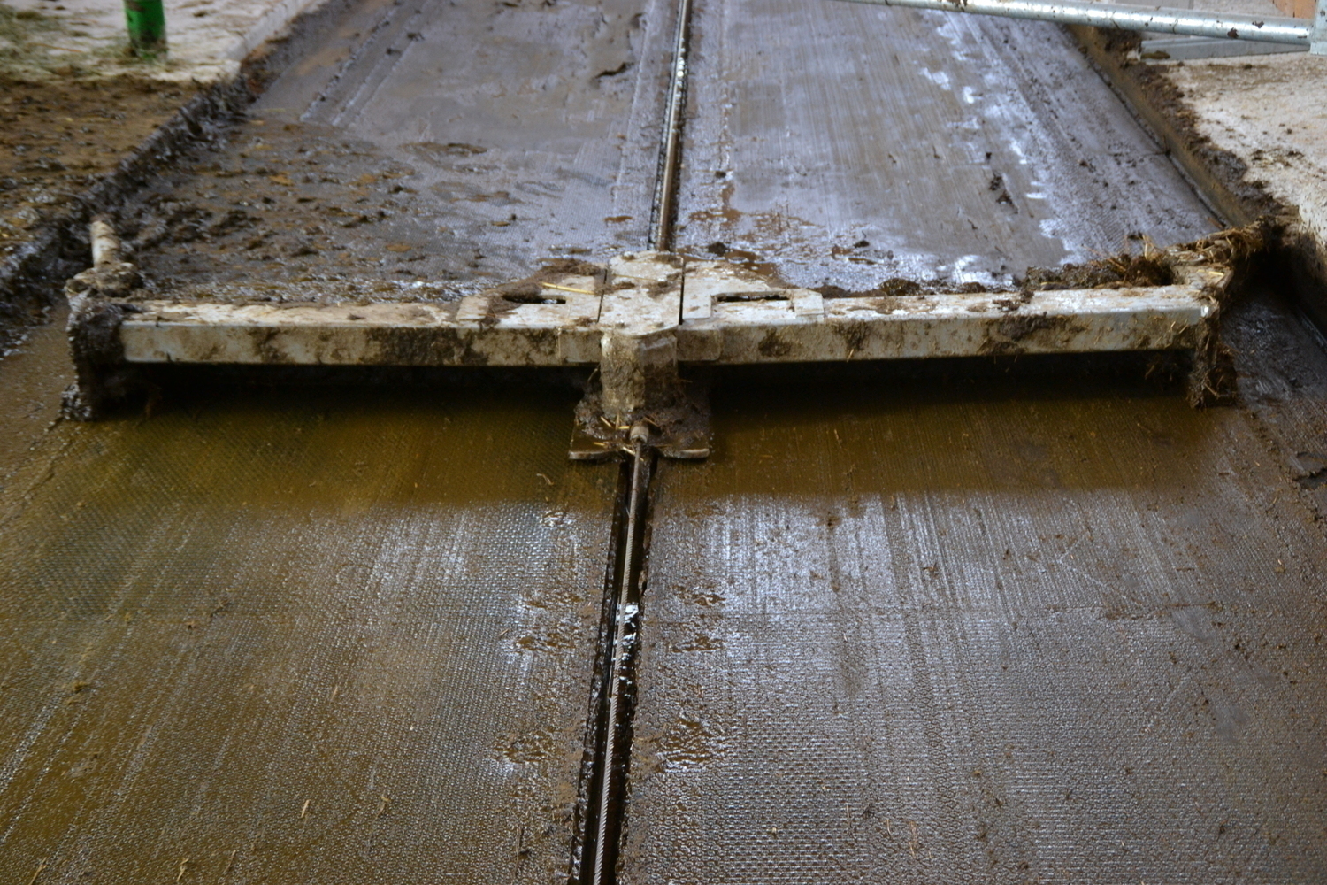 Der Stall steht teilweise auf der Güllegrube, die Schieberentmistung wirft direkt in diese ab.
