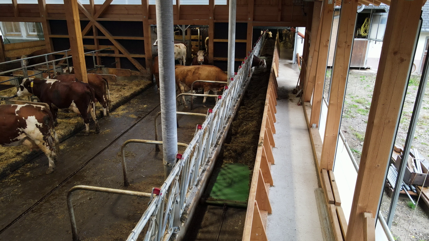 Im ehemalige Anbindestall befinden sich nun die Sonderbereiche, sowie weitere Fressplätze im Rücktrieb aus dem Melkstand