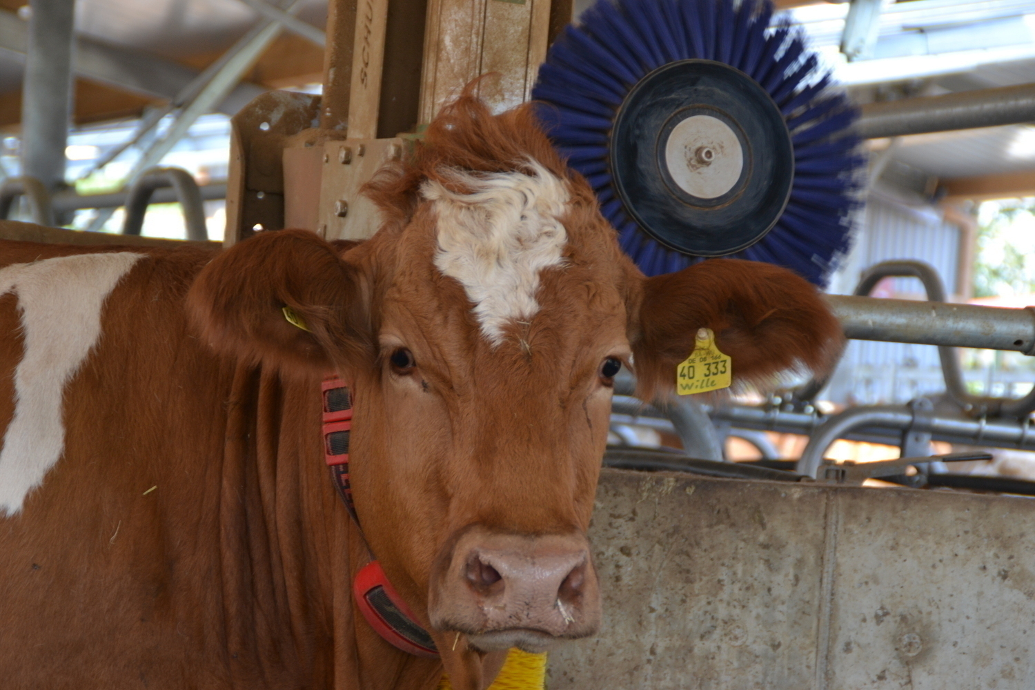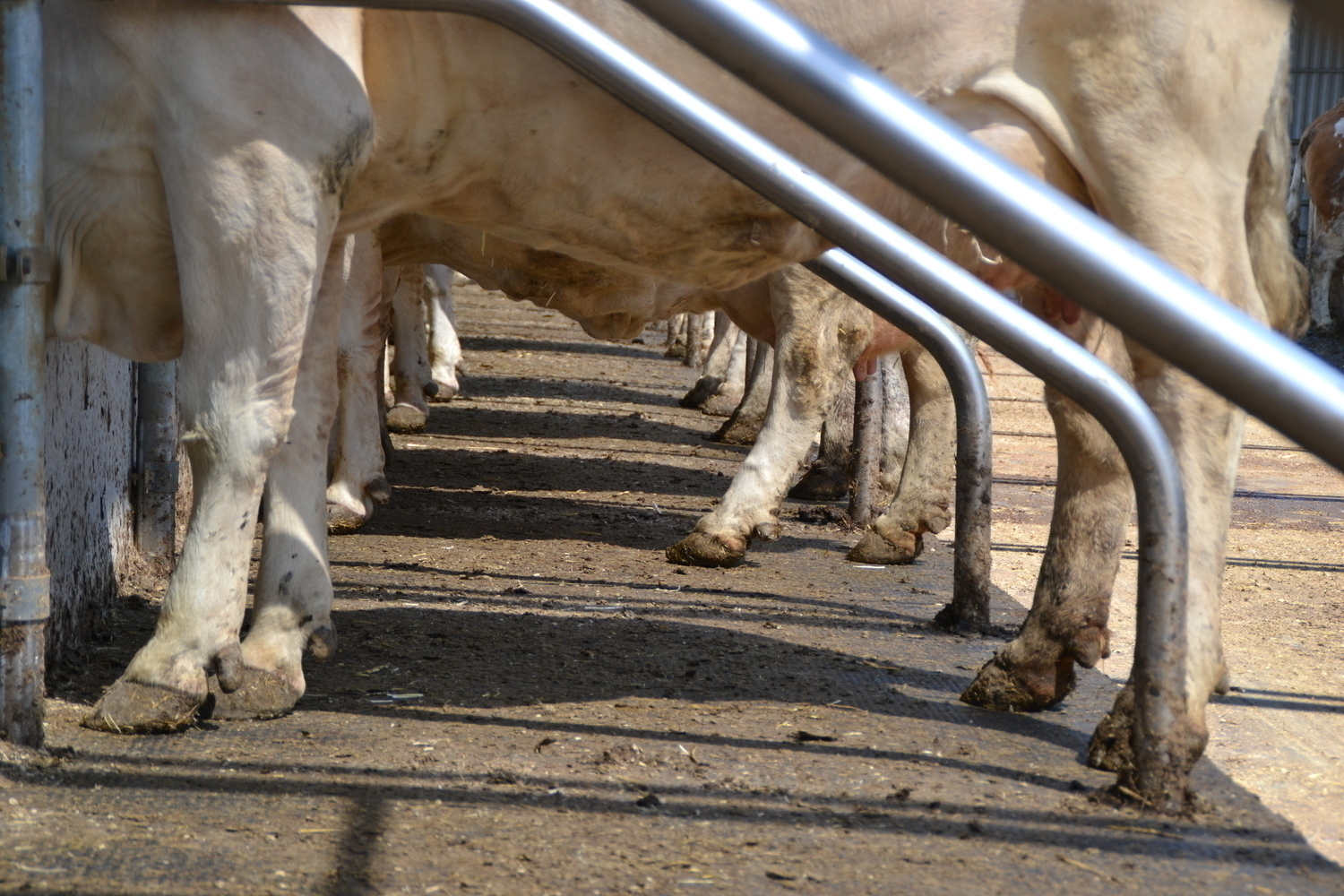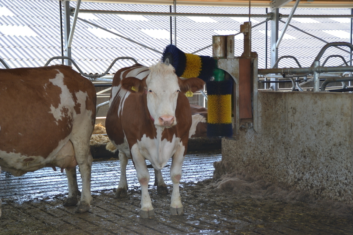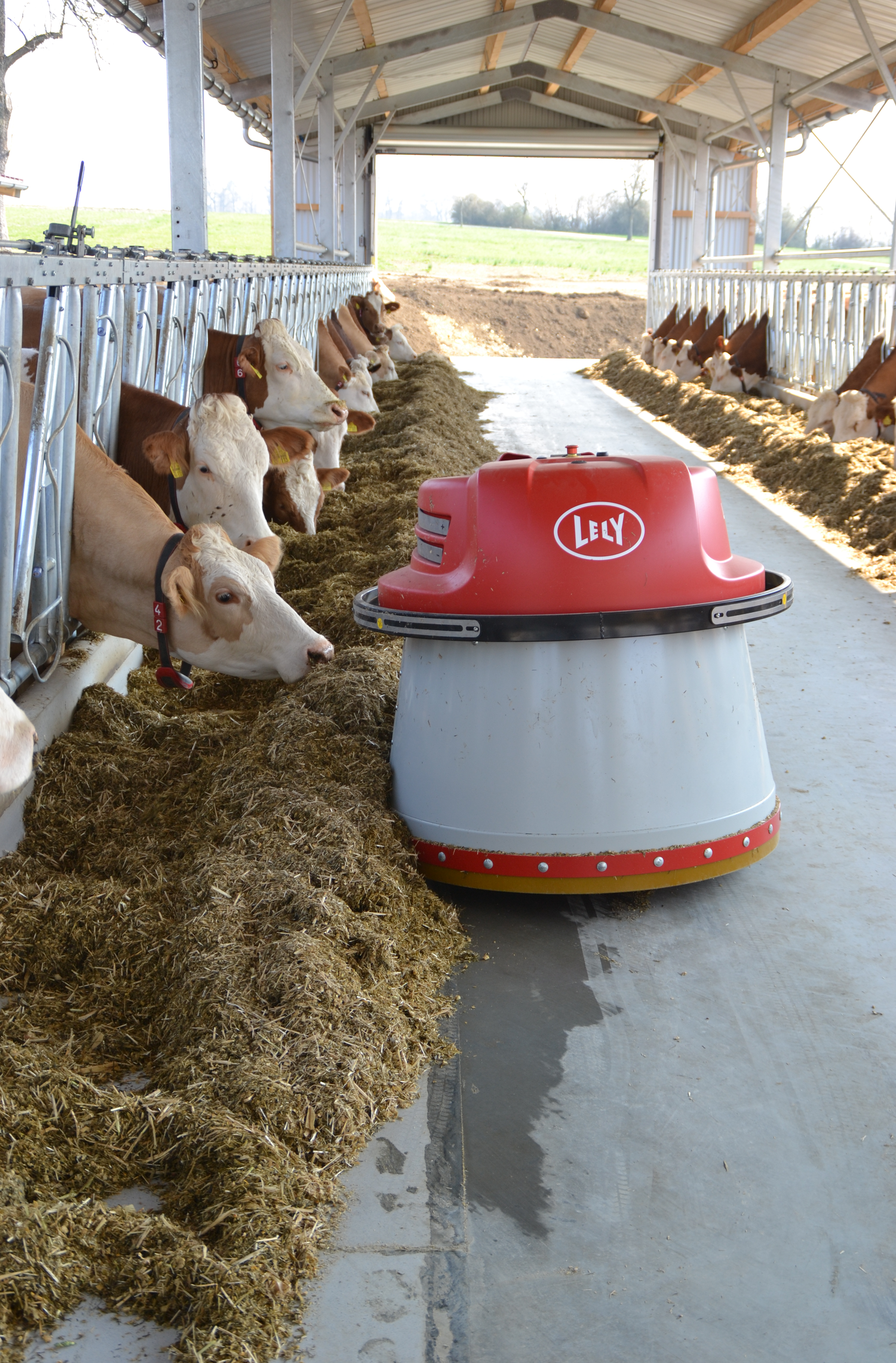 Die erhöhten Fressstände reduzieren die emitierende Fläche. Der Entmistungsschieber kann deutlich häufiger abschieben, ohne die Kühe beim Fressen zu stören.