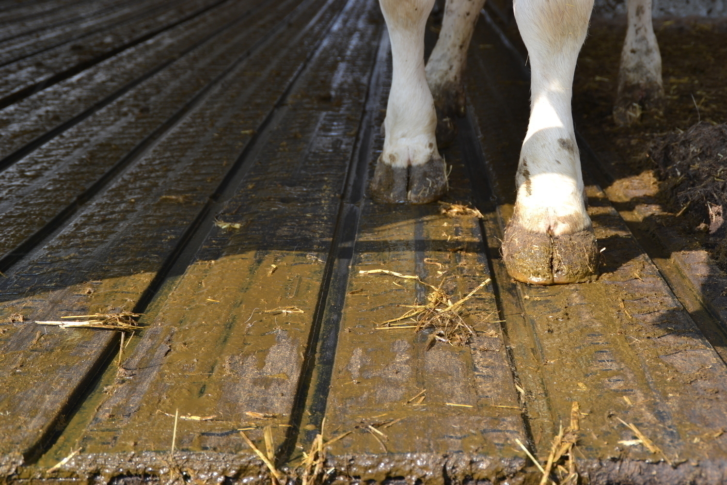 28.12.2018 Emissionsmindernder Gummirillenboden: Ein dachförmiges Gefälle auf den Auftrittsflächen leitet Harn rasch in die Längsrillen ab.