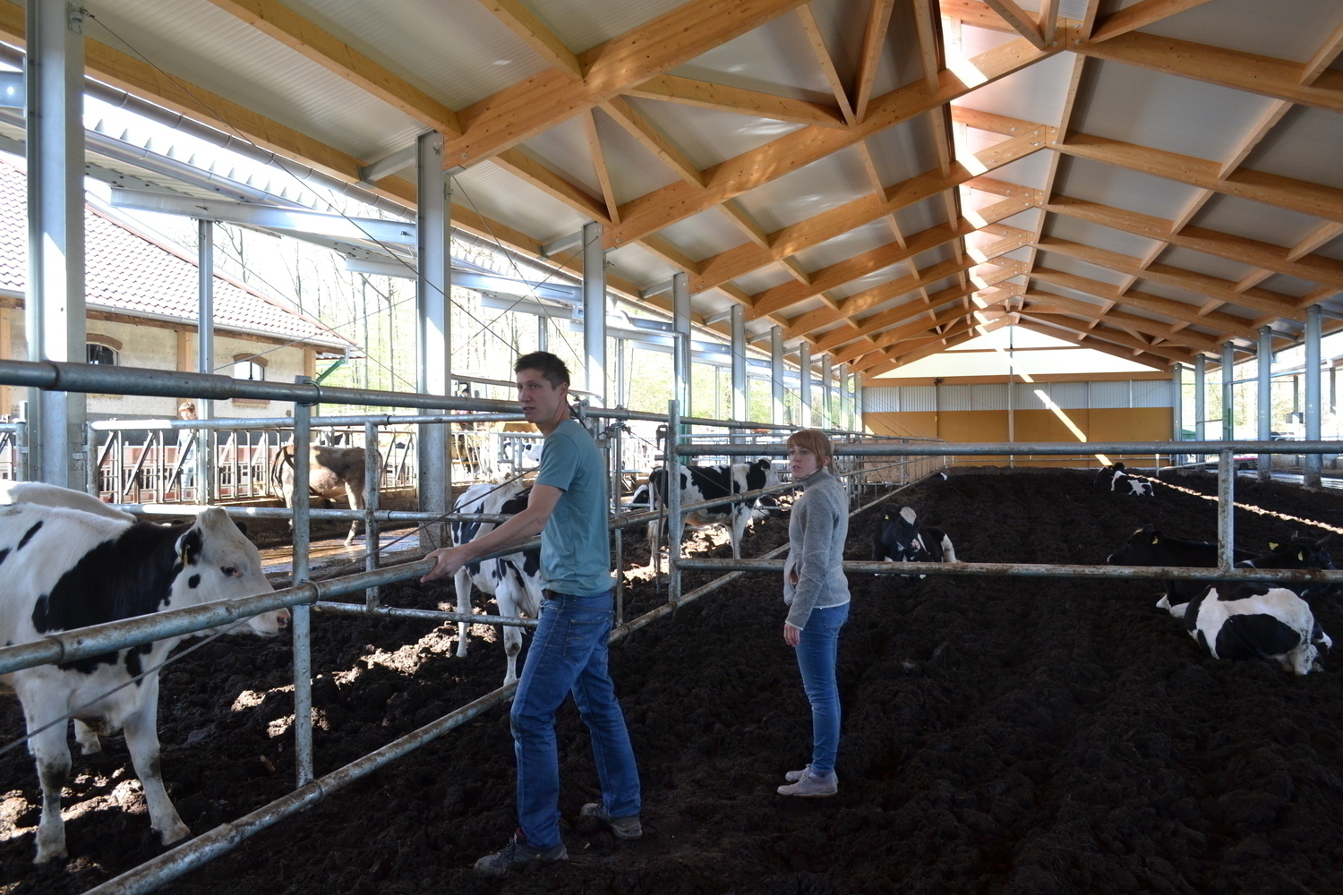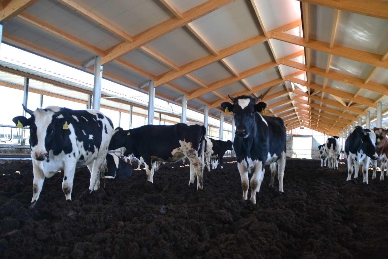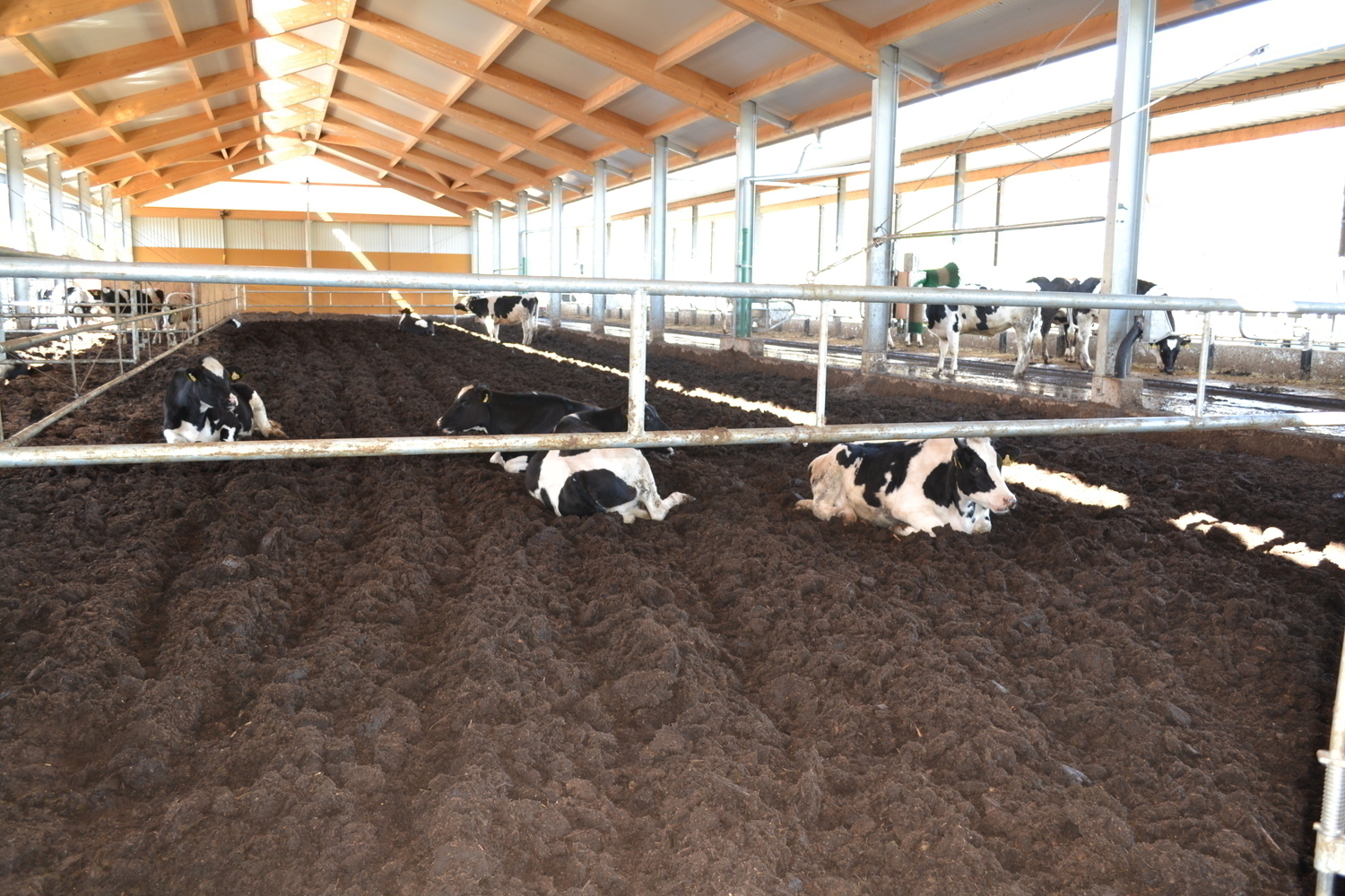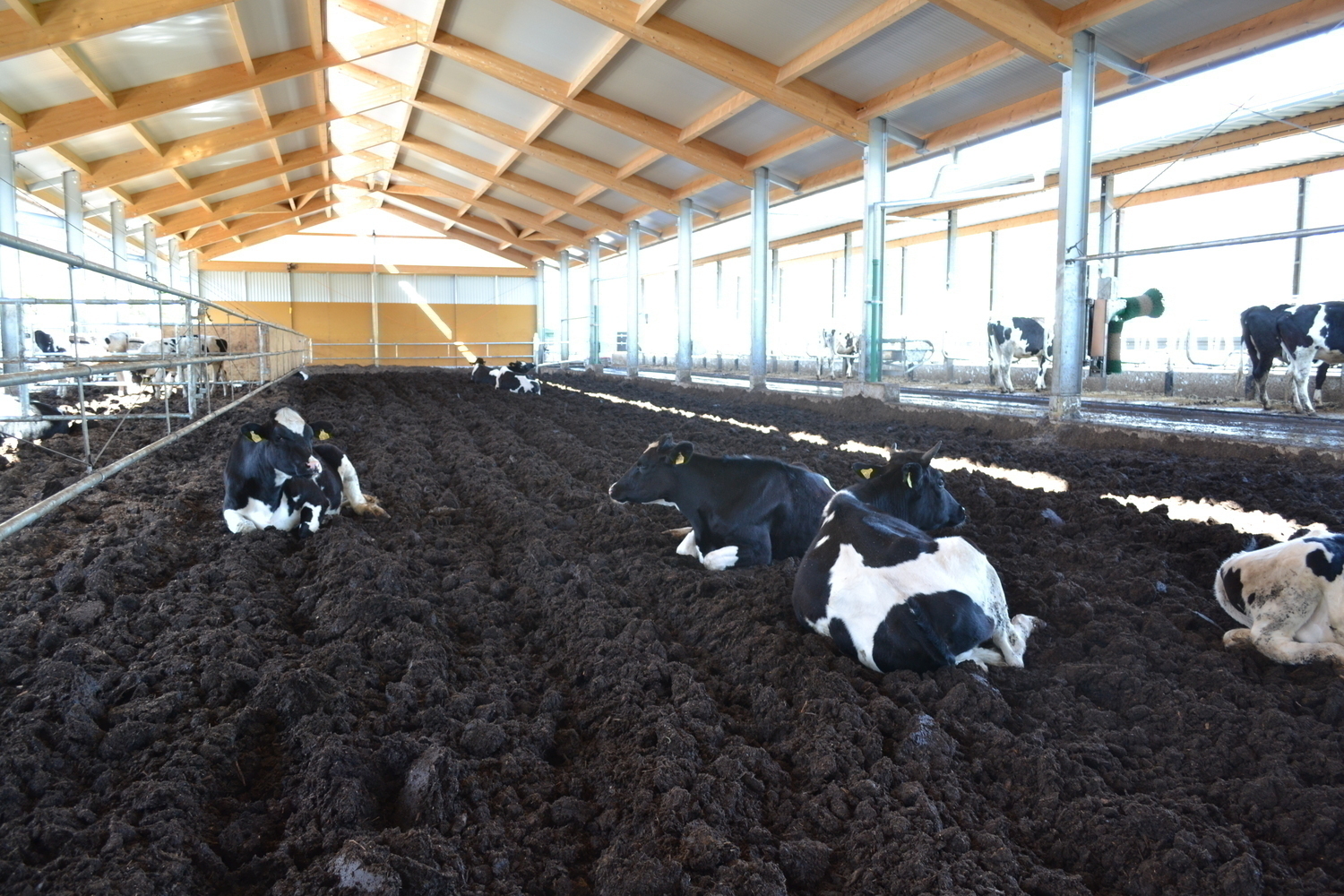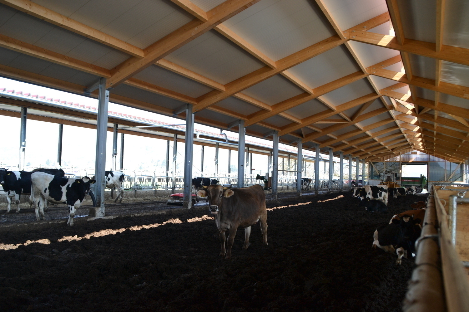 Im Kompostierungsstall sind alle Altersklassen und Haltungsabschnitte untergebracht. Auch die Ammenkühe und Kälber haben hier ihren Platz.