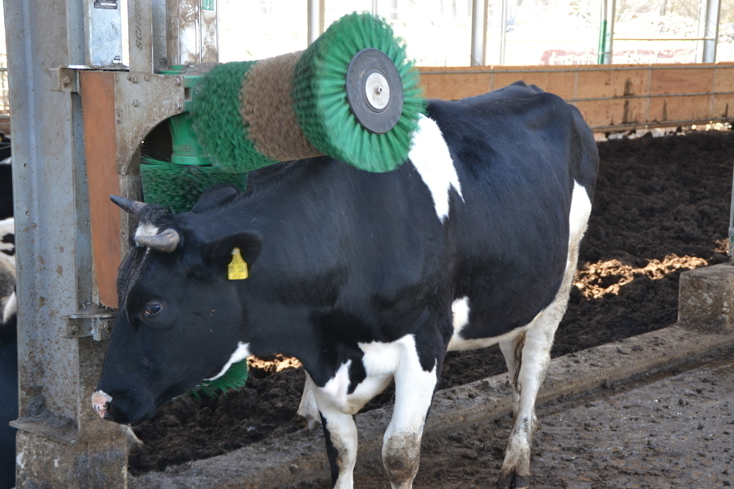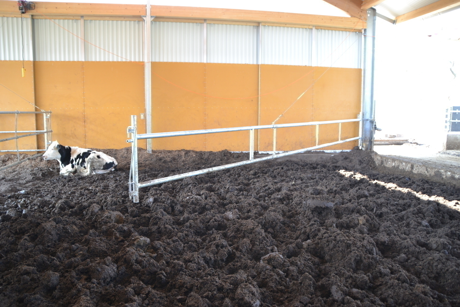 Ein integrieter Laufhof befindet ich zwischen Kompostfläche und Fressbereich. Dieser Bereich ist nicht überdacht und bietet daher neben der Ganztagsweide im Sommer, auch im Winter einen Außenklimareiz.
