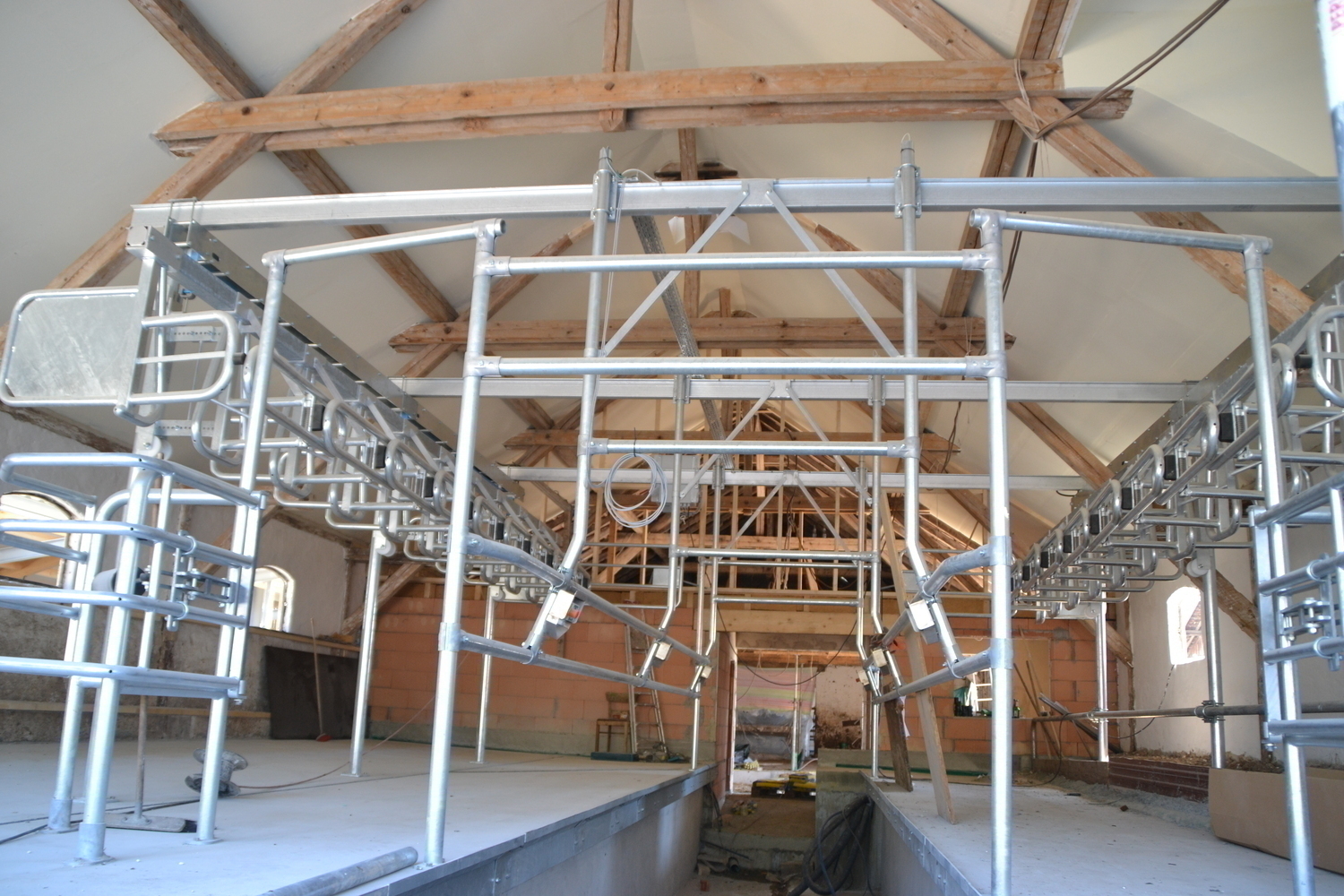 Der neue 2 x 8 Fischgrätenmelkstand wurde im Altgebäude eingebaut