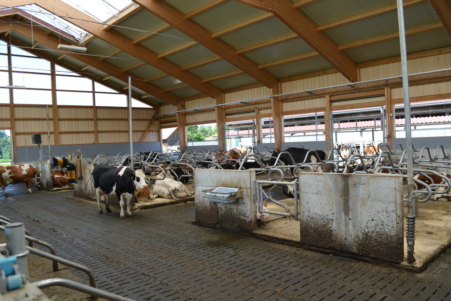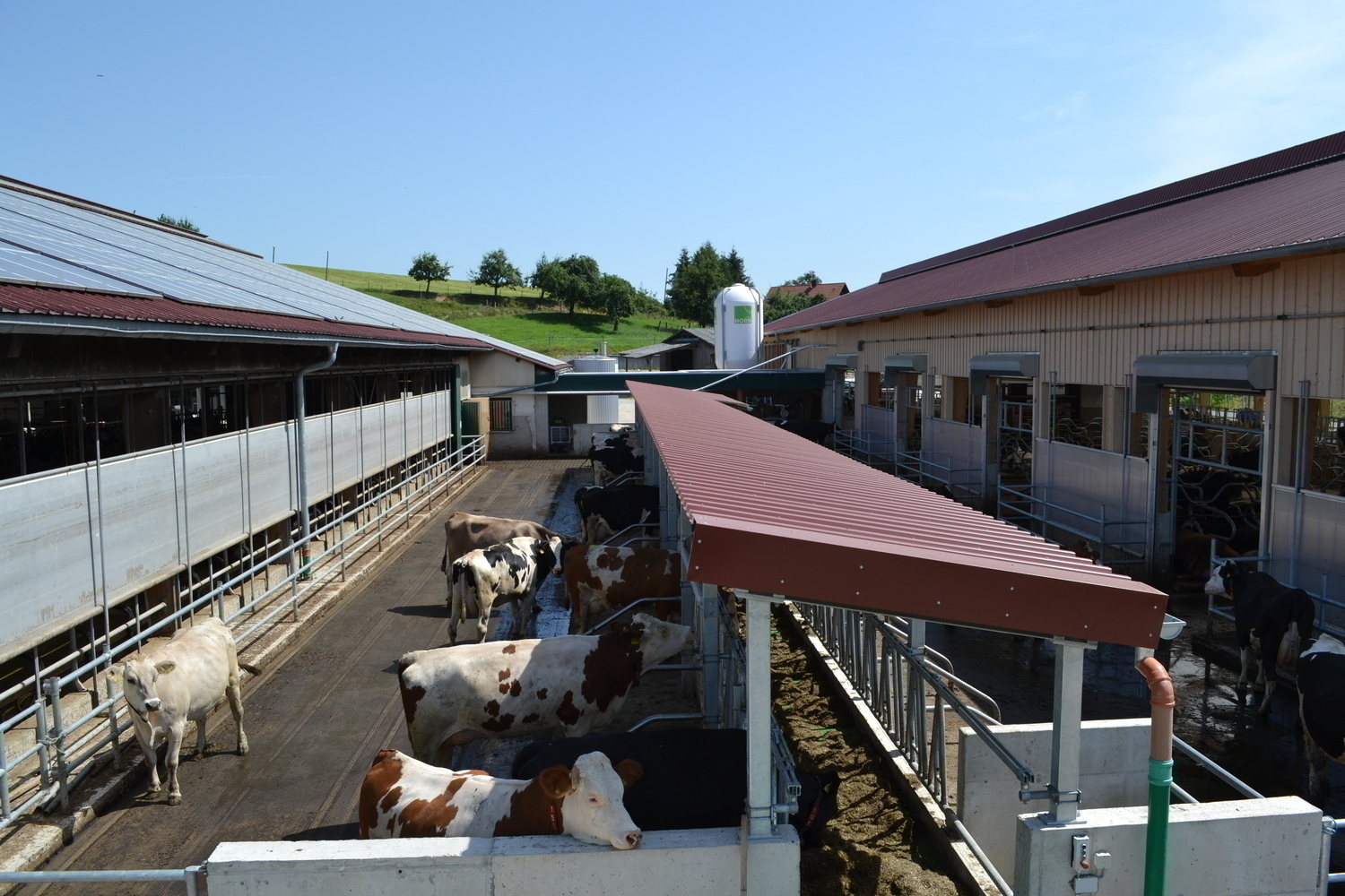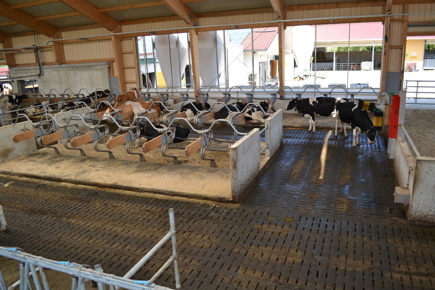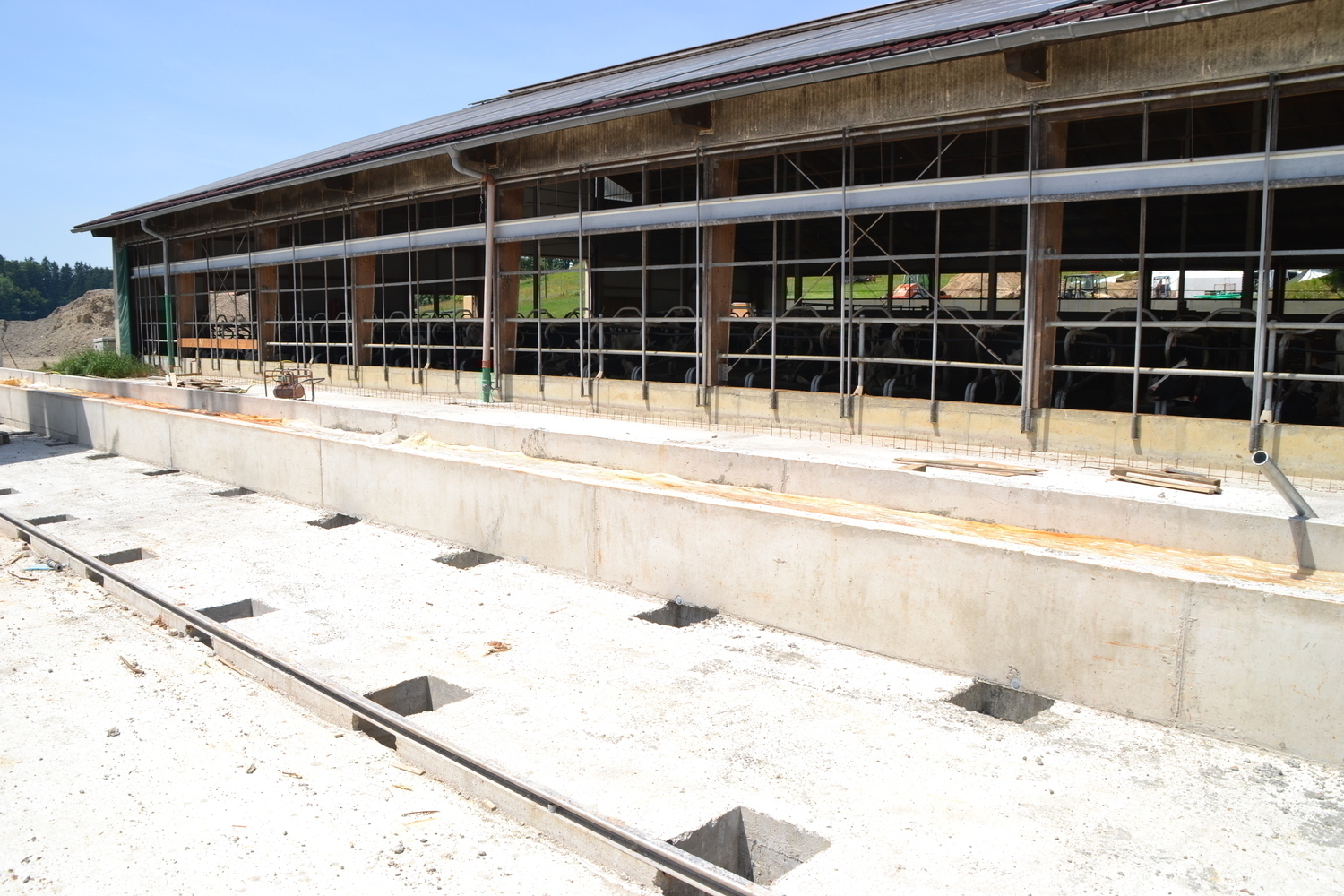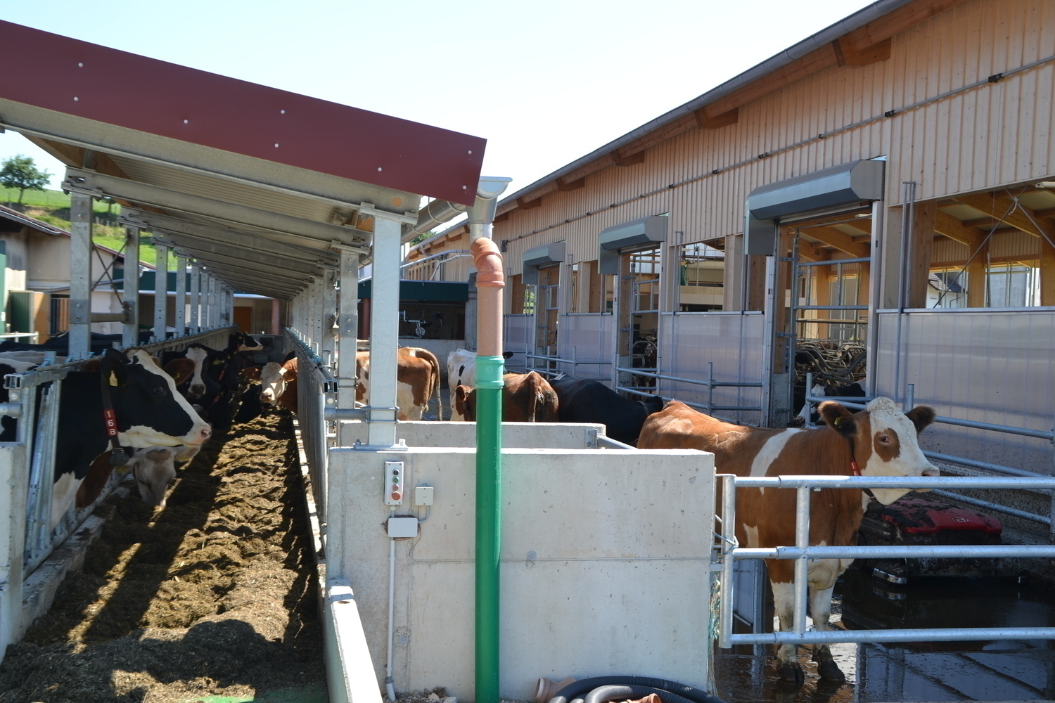 Der Laufhof verfügt über einen Stichfuttertisch mit Futterband. Er bietet sowohl den Kühen aus bestehenden Stall, als auch dem denen aus dem Neubau einen Freigeländezugang und zusätzliche Fressplätze.