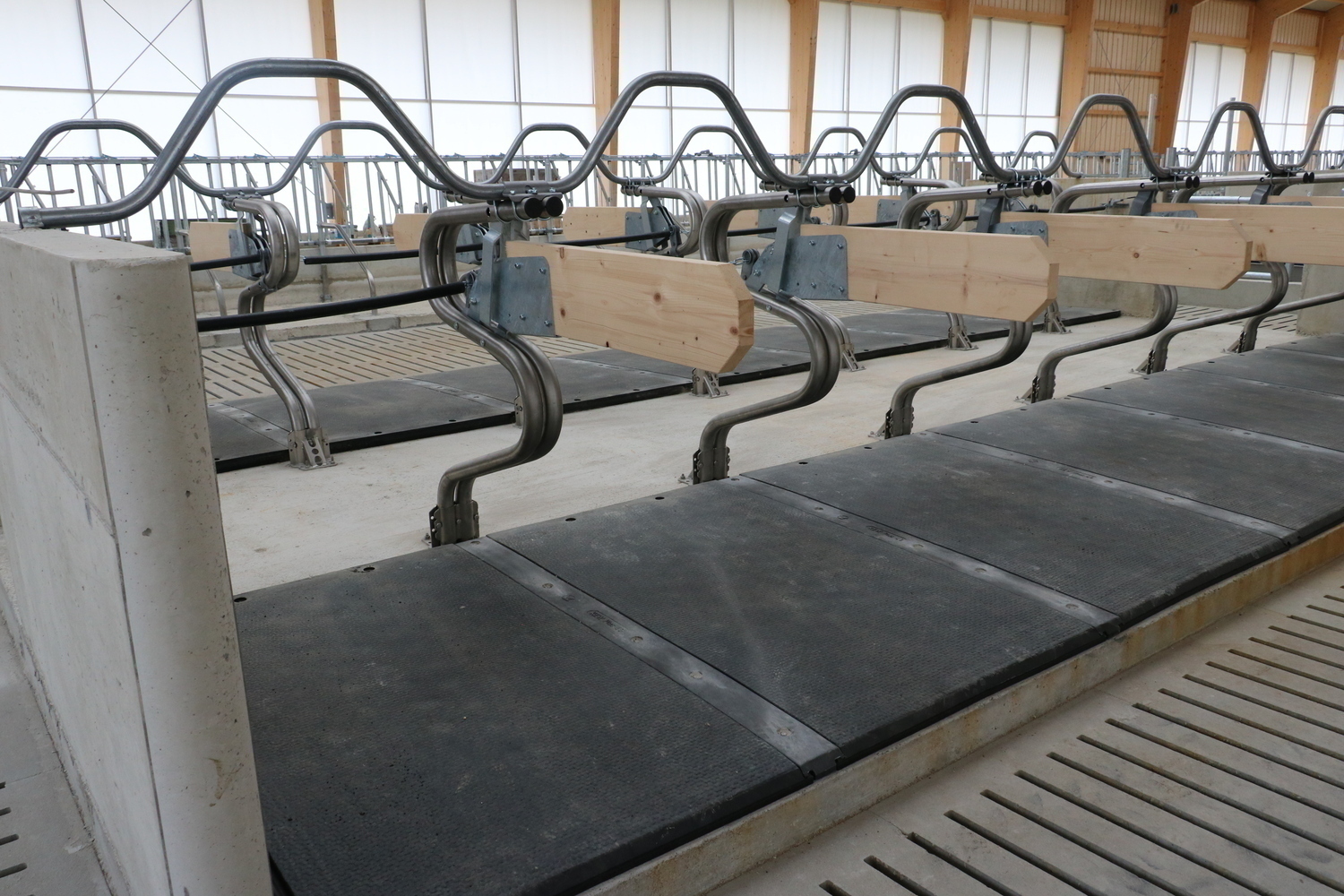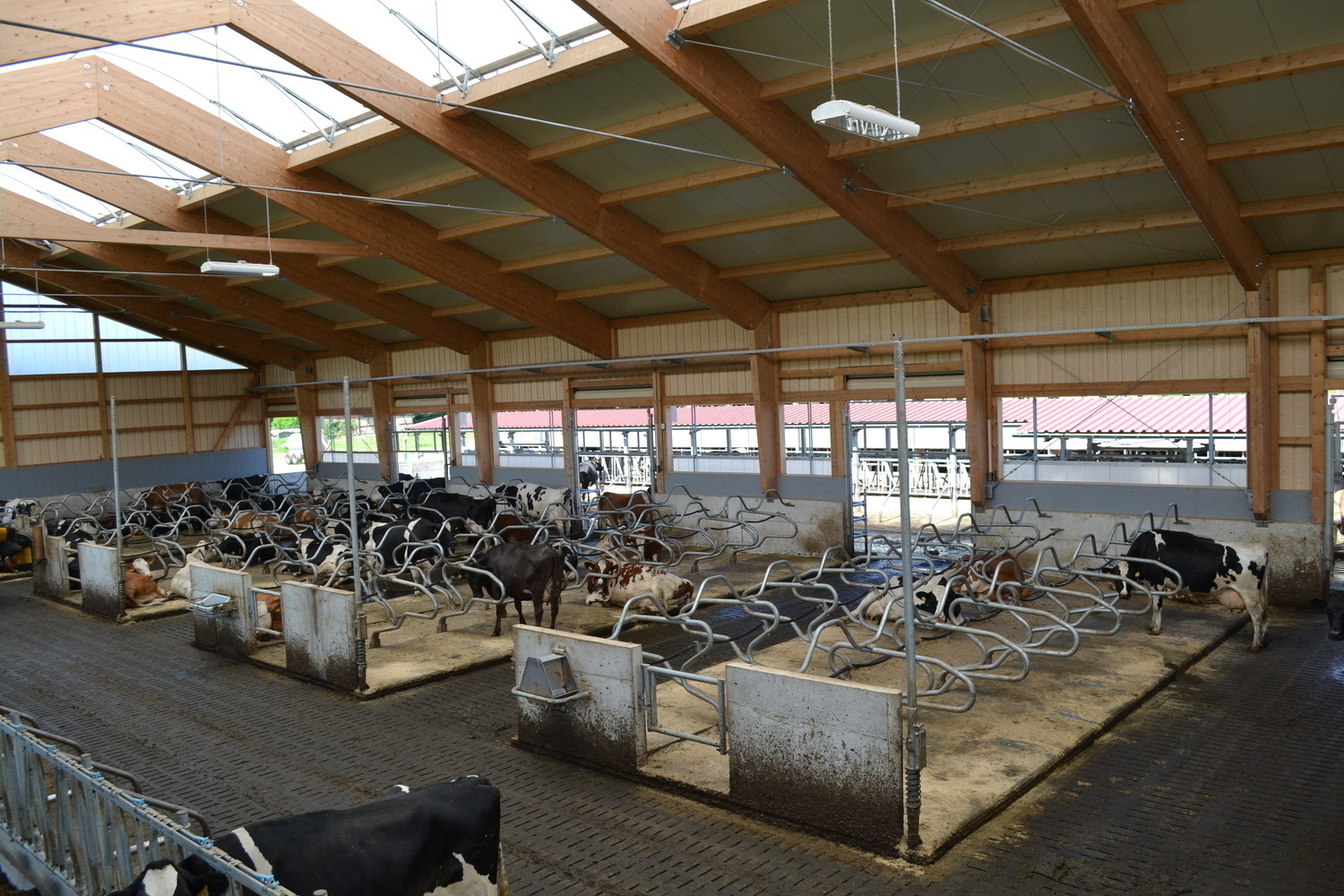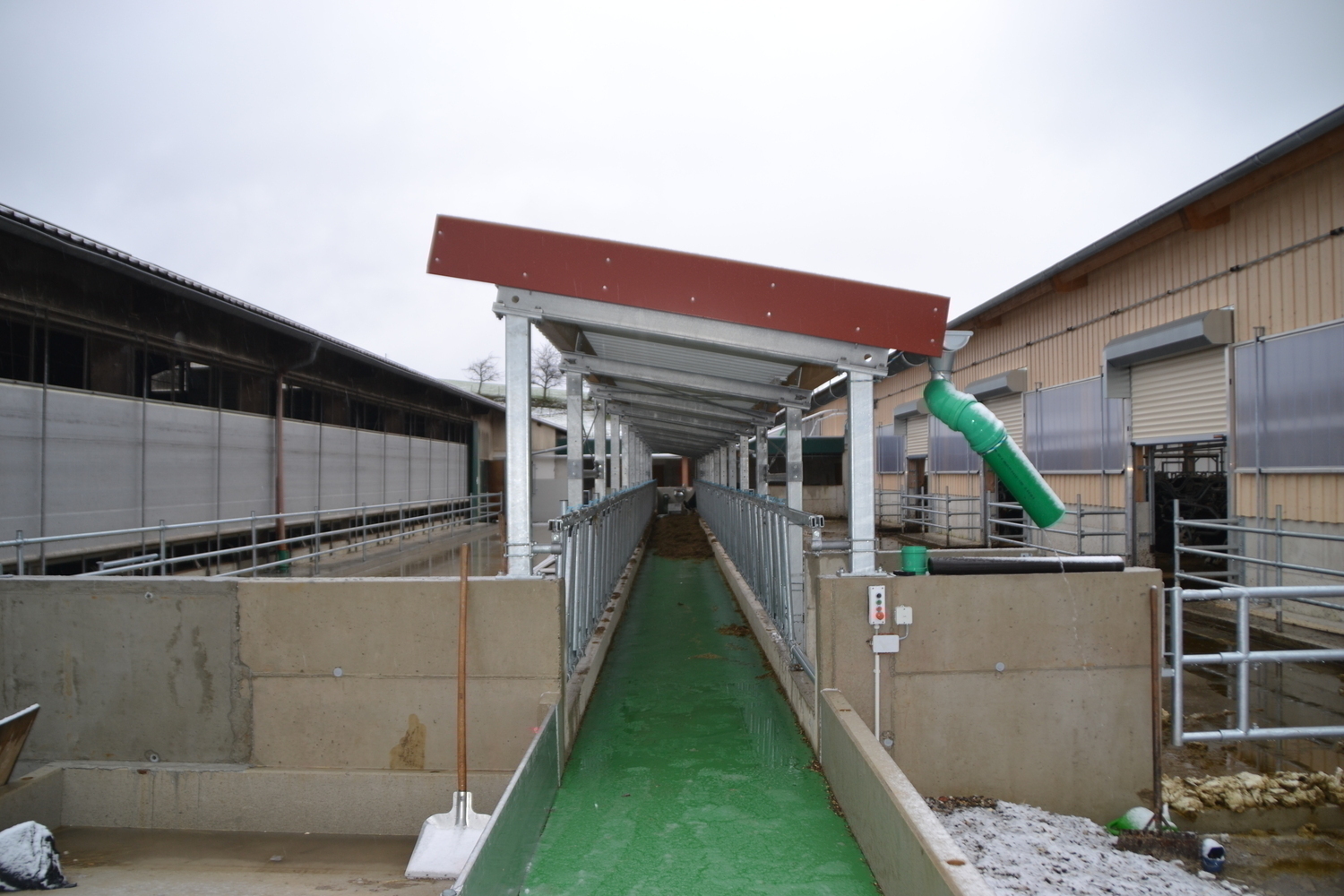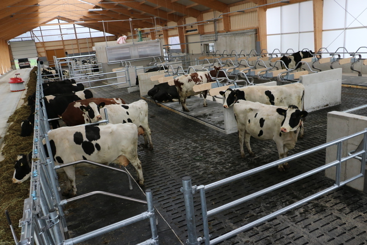 Der Laufhof verfügt über einen Stichfuttertisch mit Futterband. Er bietet sowohl den Kühen aus bestehenden Stall, als auch dem denen aus dem Neubau einen Freigeländezugang und zusätzliche Fressplätze.