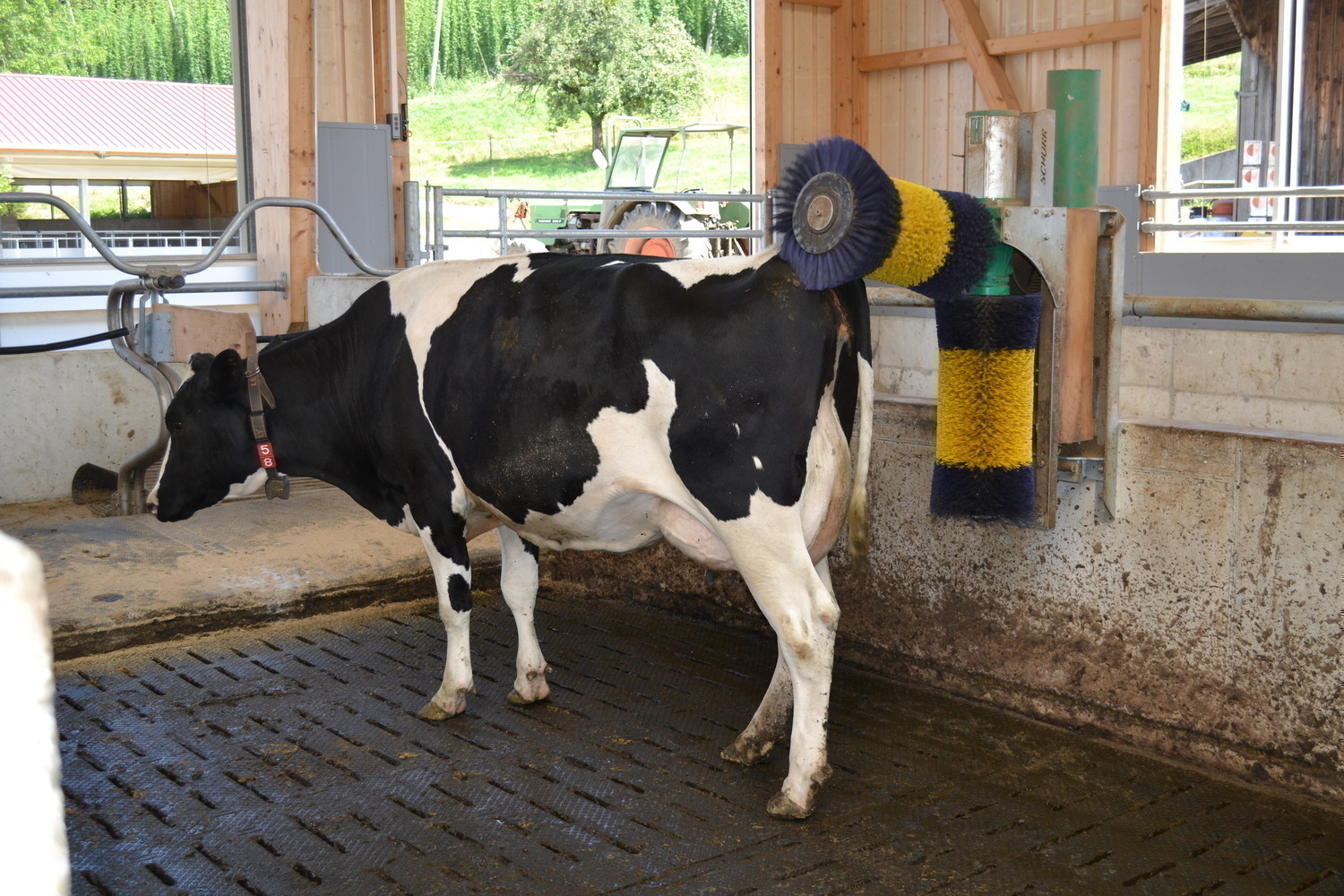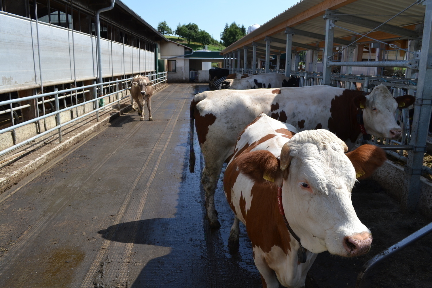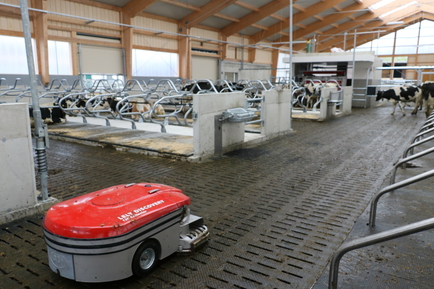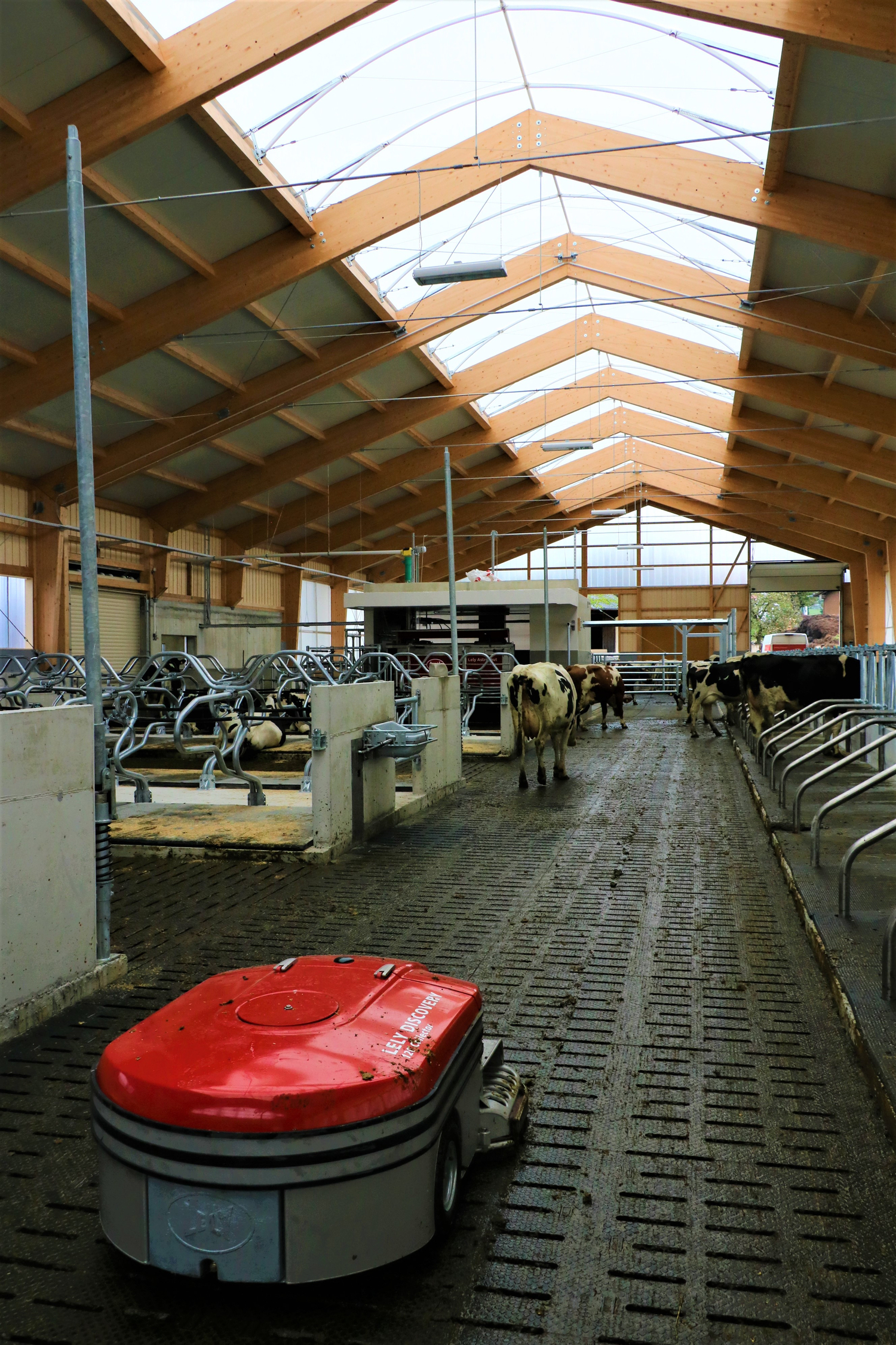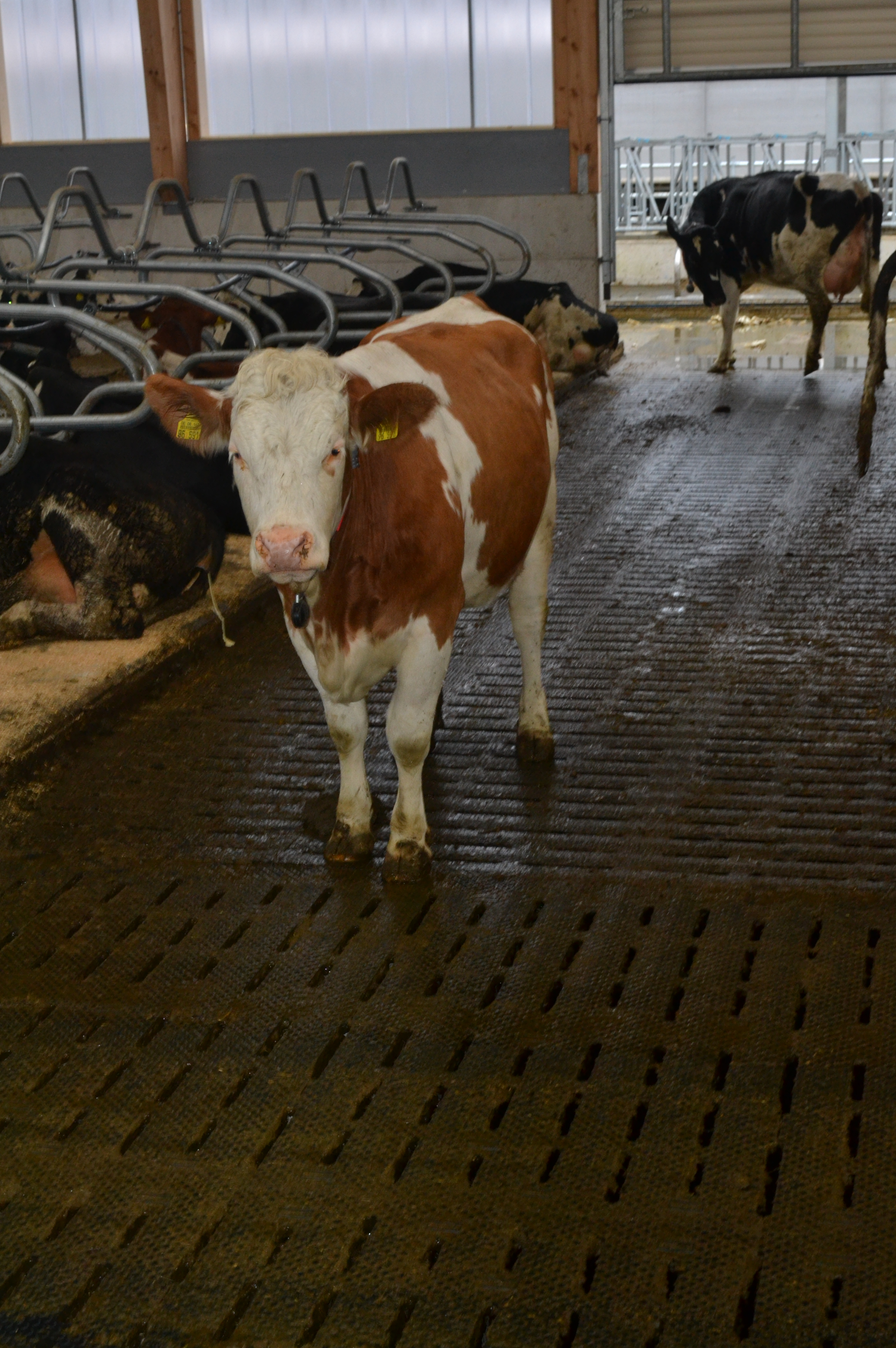 Über ein Ein-Wege-Tor können die Kühe aus dem Special Need Bereich zur Herde zurückgelangen. Über den Melkroboter werden sie wieder in den seperaten Bereich zurückselektiert. So soll eine langsame und stressfrei Eingliederung in die Herde erfolgen.