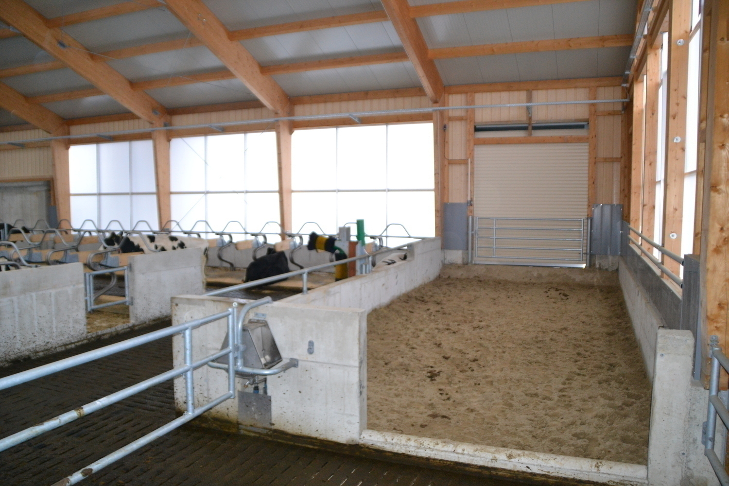 Die Abkalbebucht ist mit Sand gefüllt. Das ist für die Kühe sehr bequem zum Liegen und bietet Vorteile bezüglich der Hygiene.