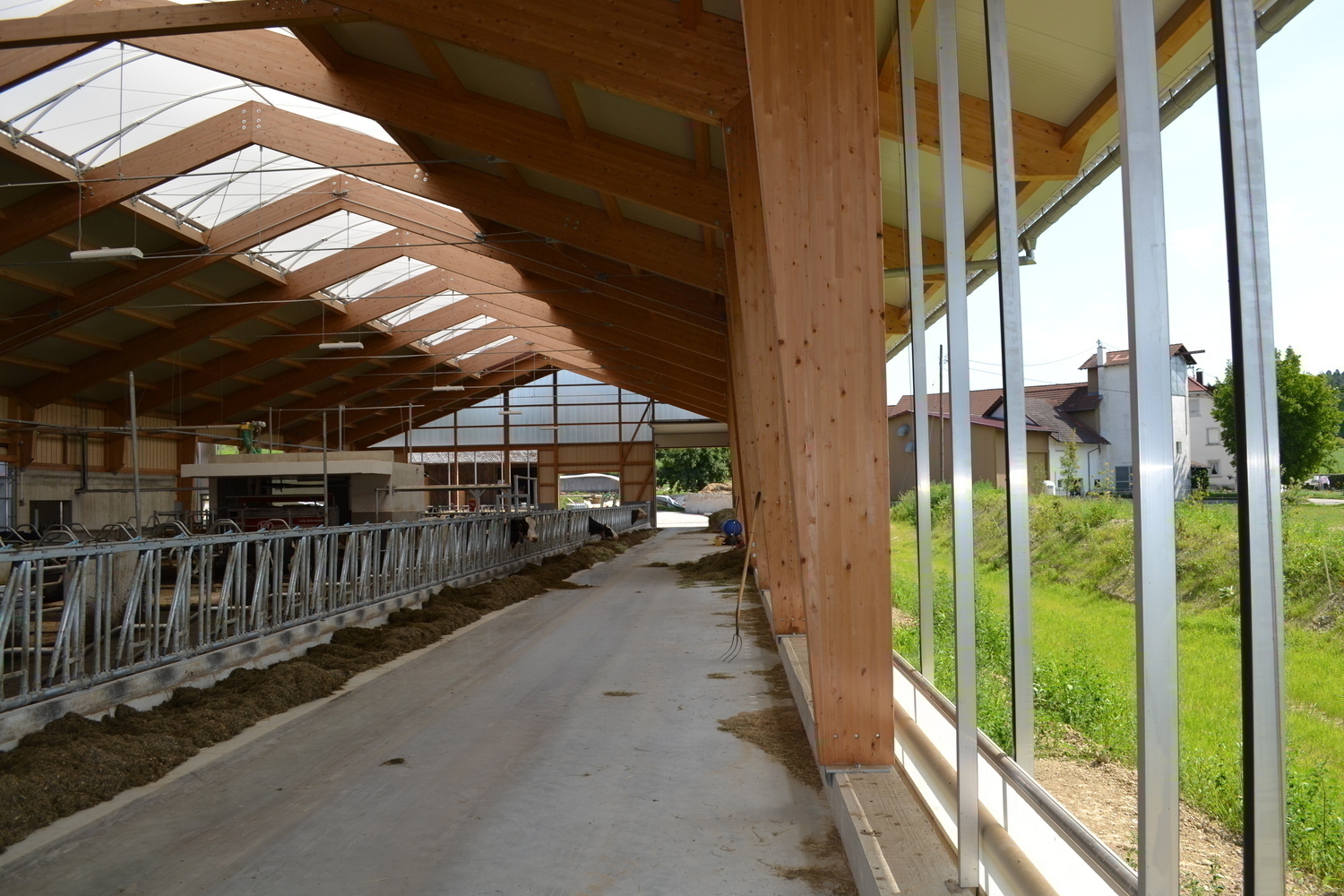 Ein 7 m breiter Folienlichtfirst sorgt für Helligkeit im ganzen Stall