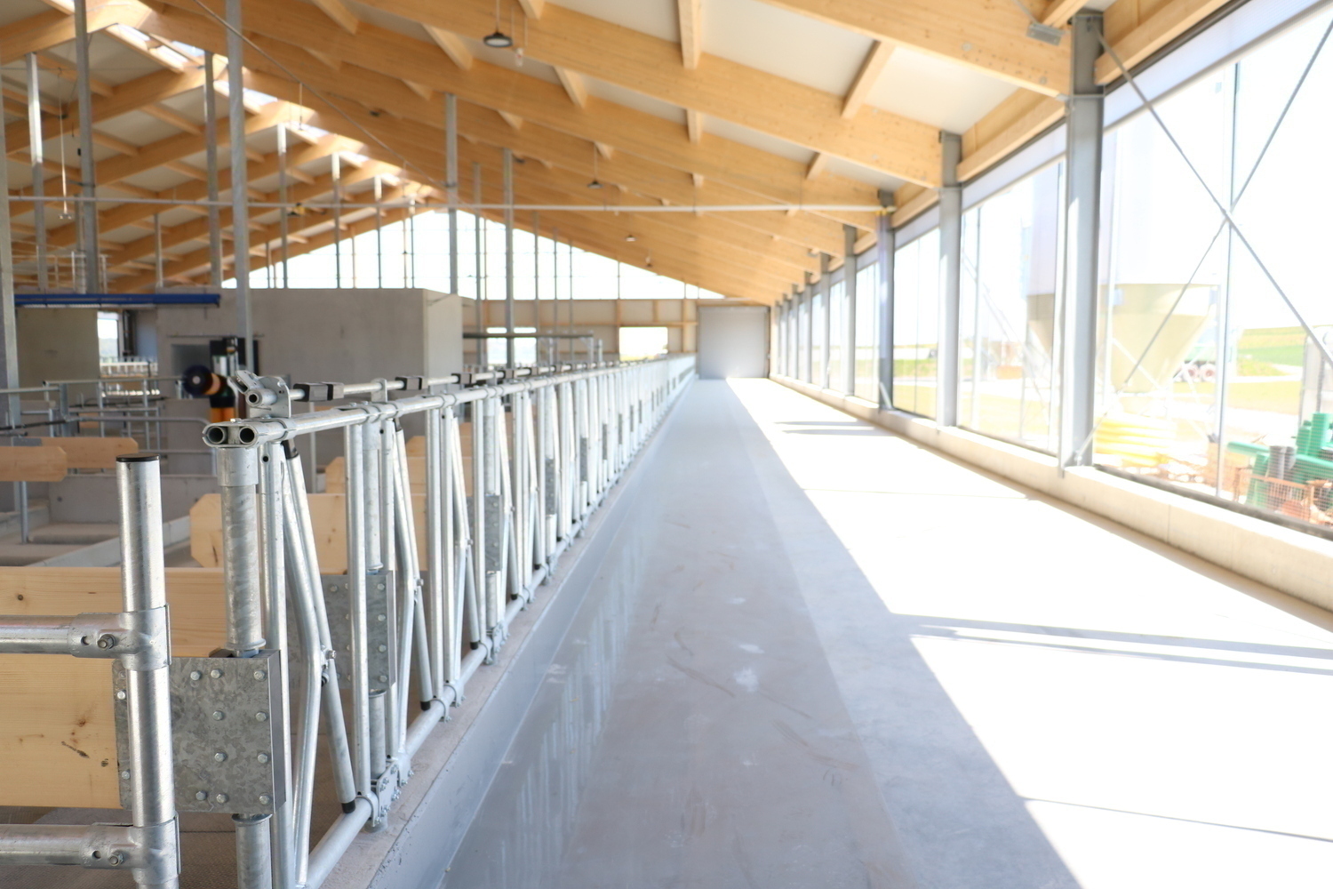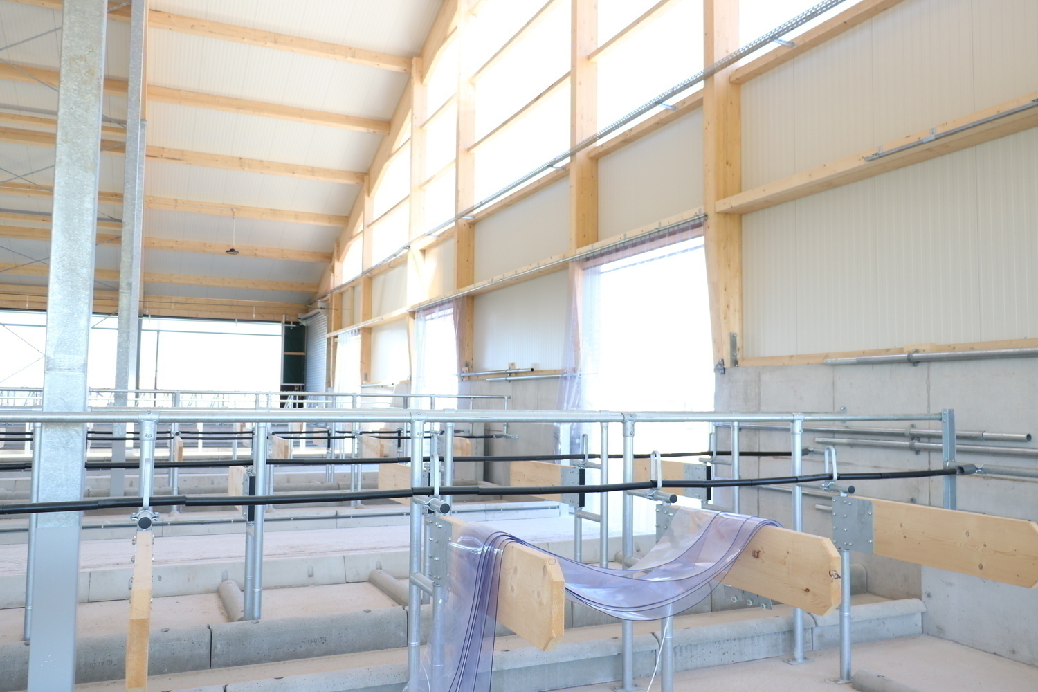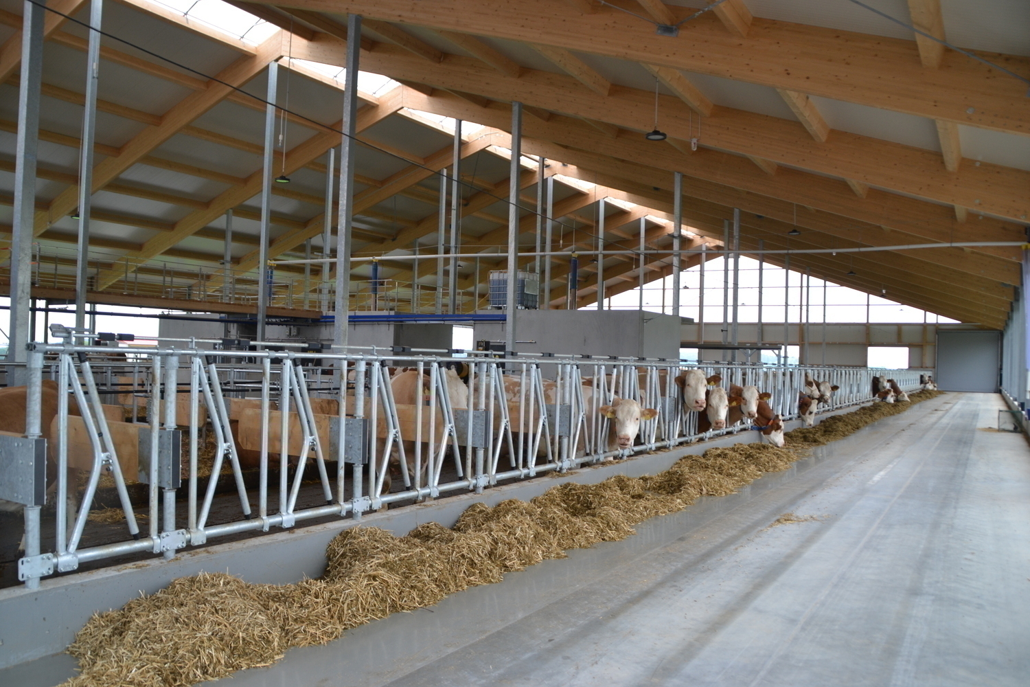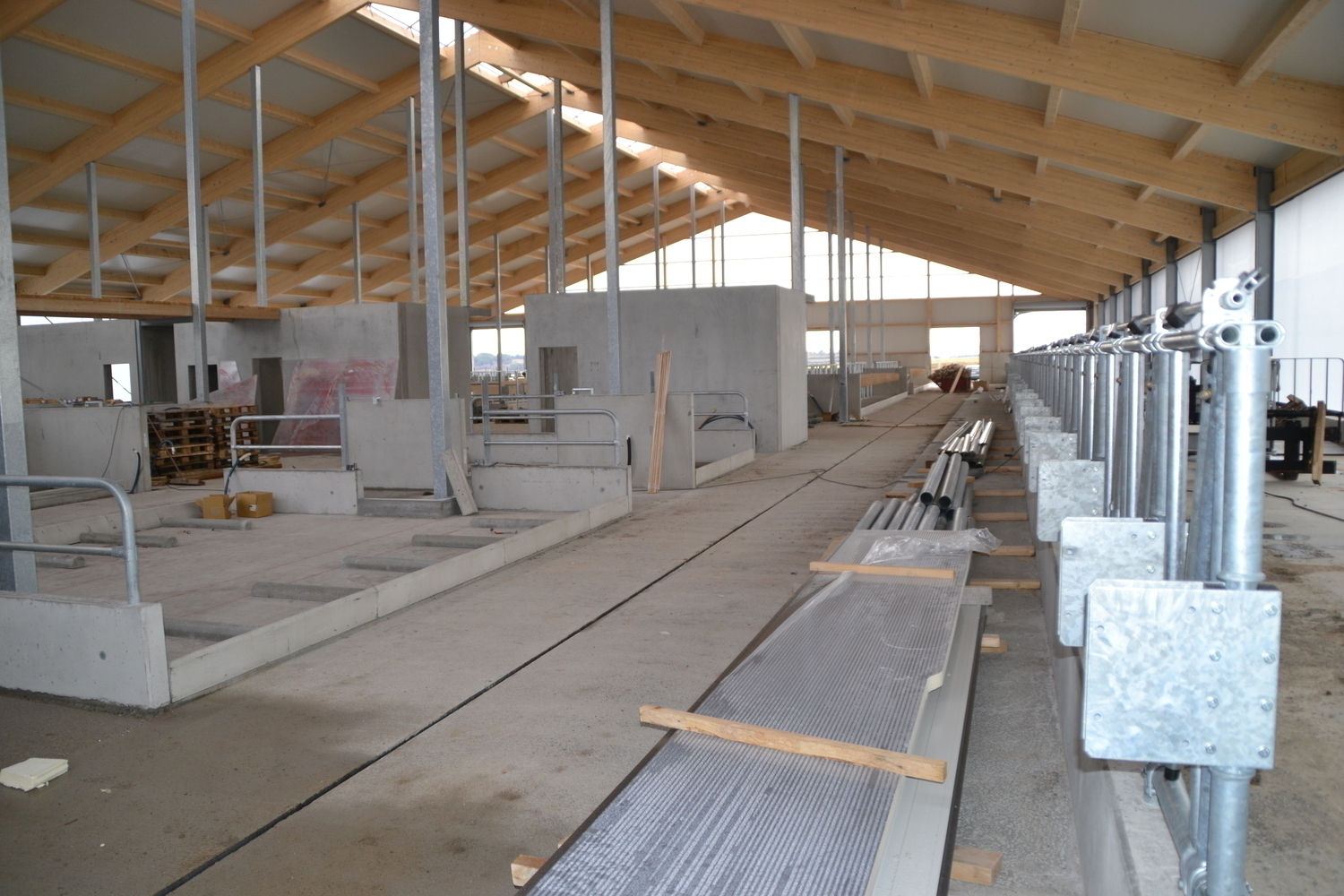 Einzugsbereiter Milchkuhstall - jetzt koennen die Tiefboxen mit Stroh eingestreut werden und die Tiere einziehen.