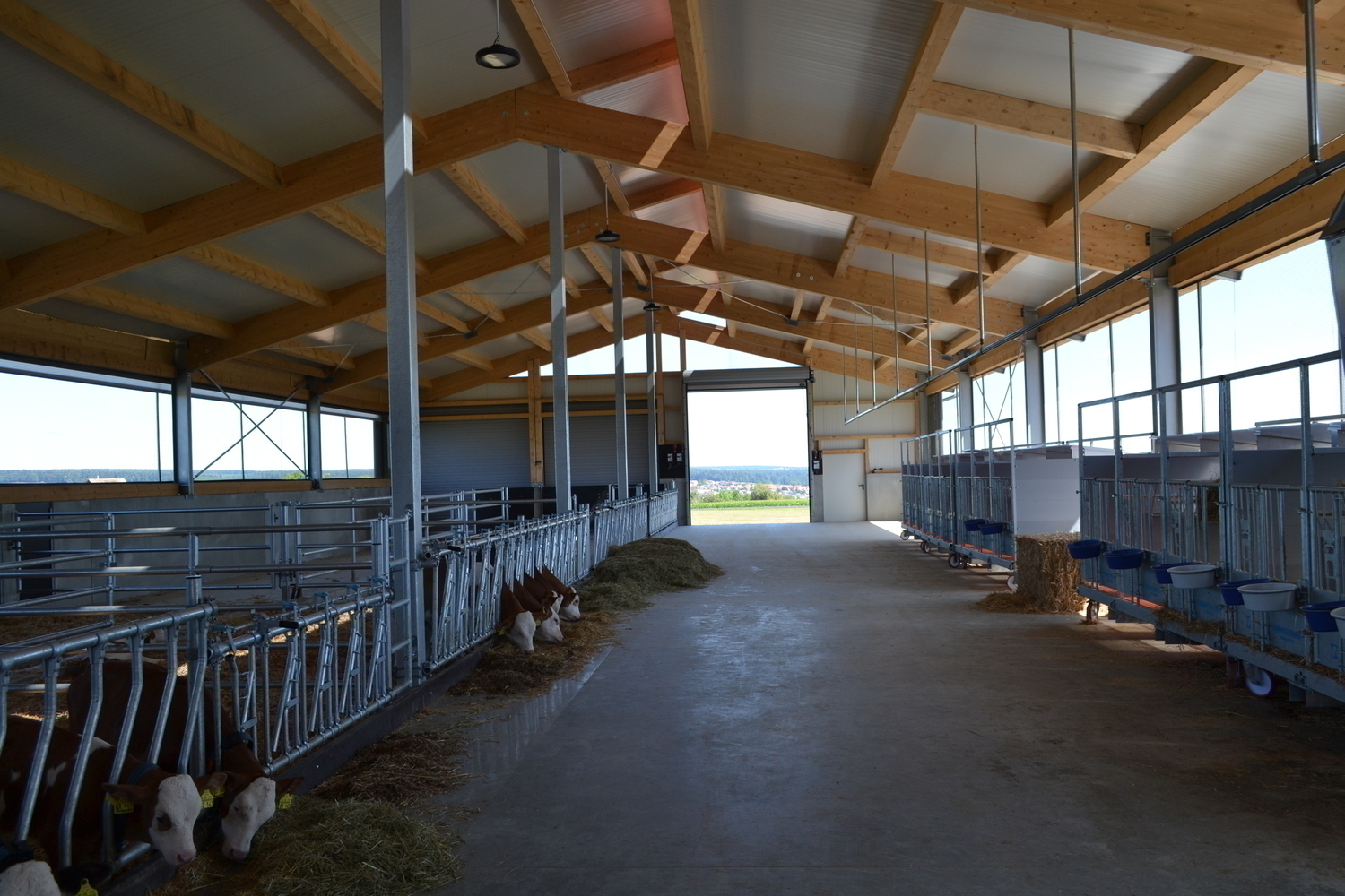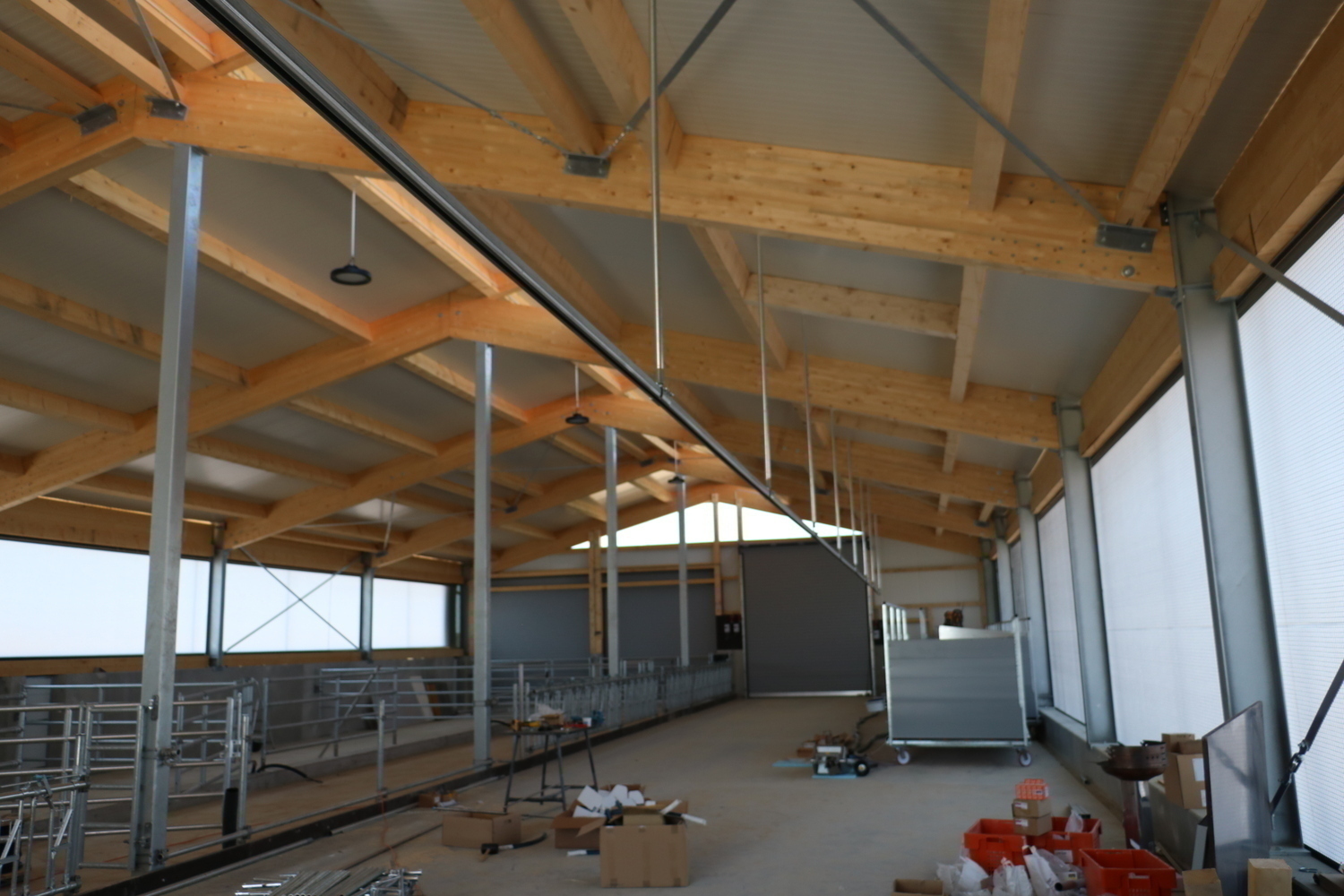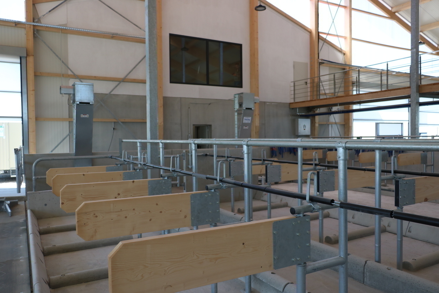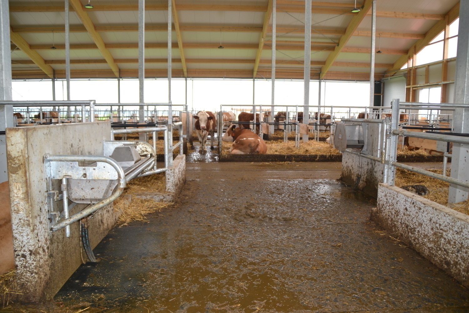 Einzugsbereiter Milchkuhstall - jetzt koennen die Tiefboxen mit Stroh eingestreut werden und die Tiere einziehen.