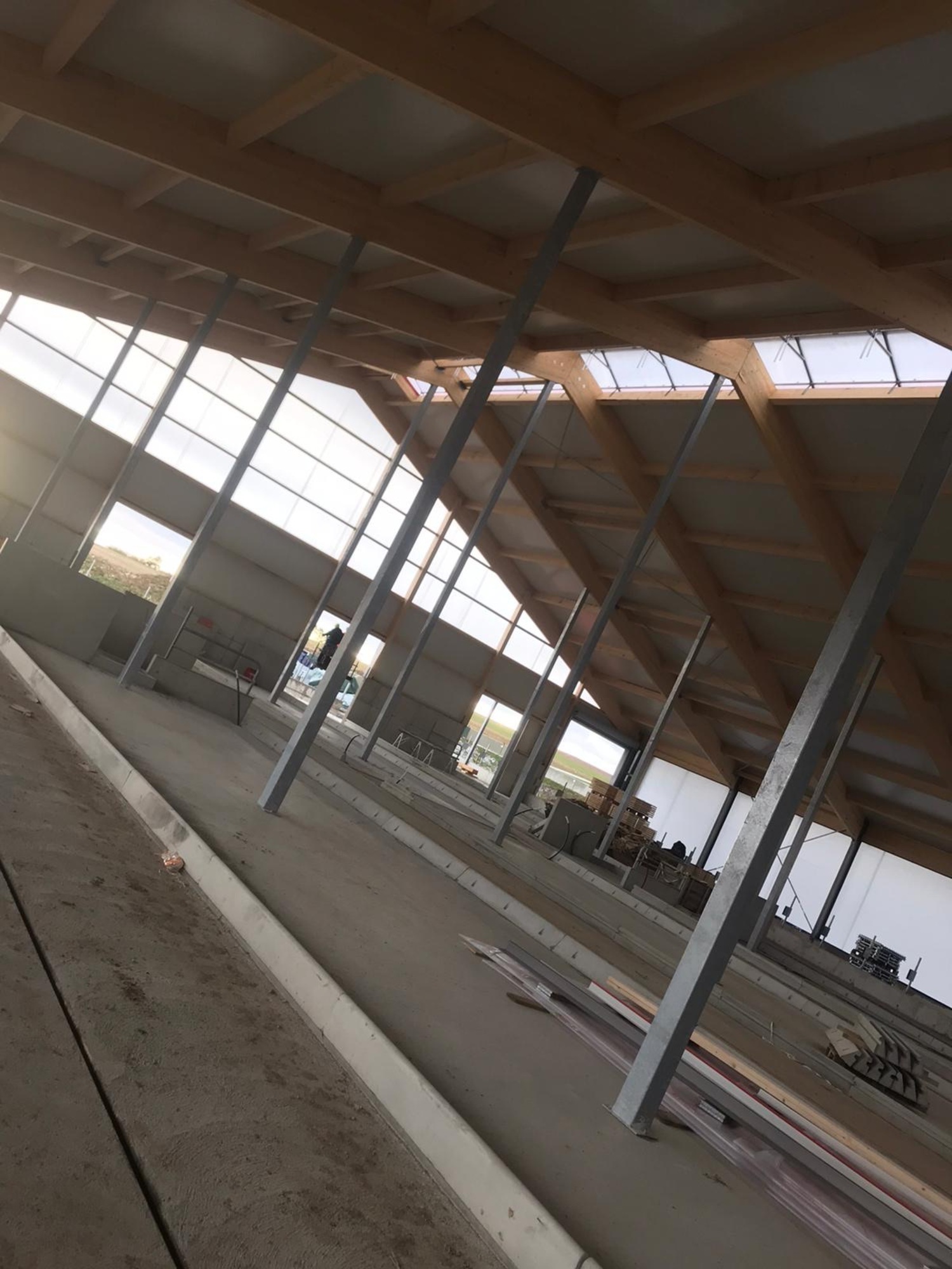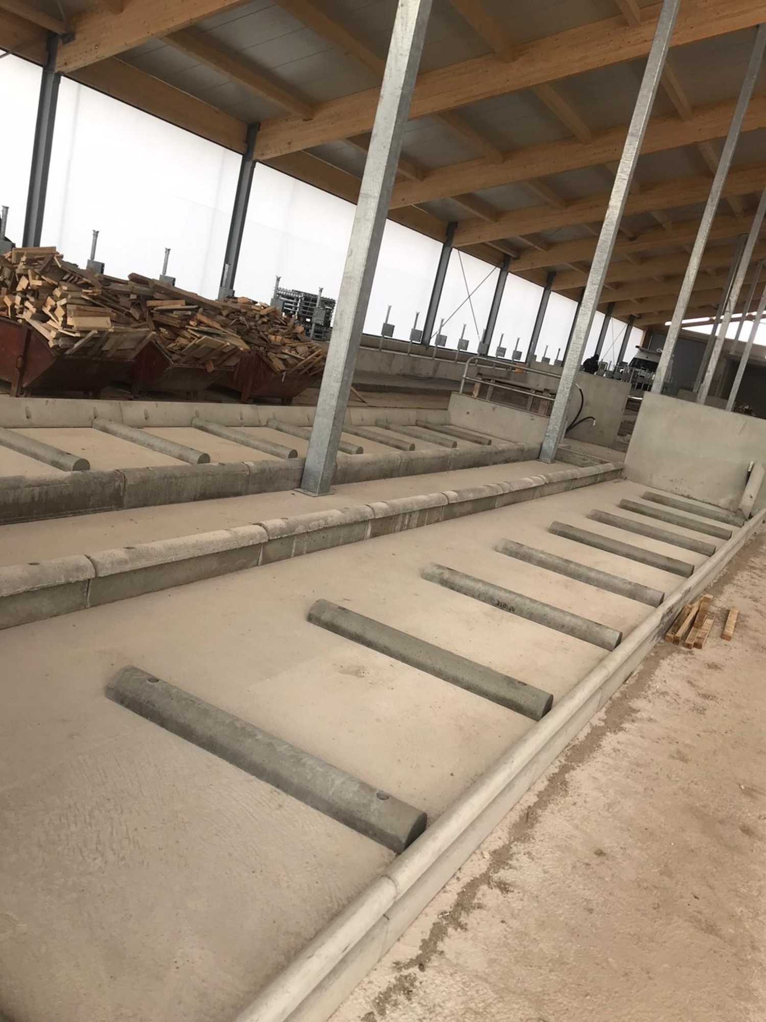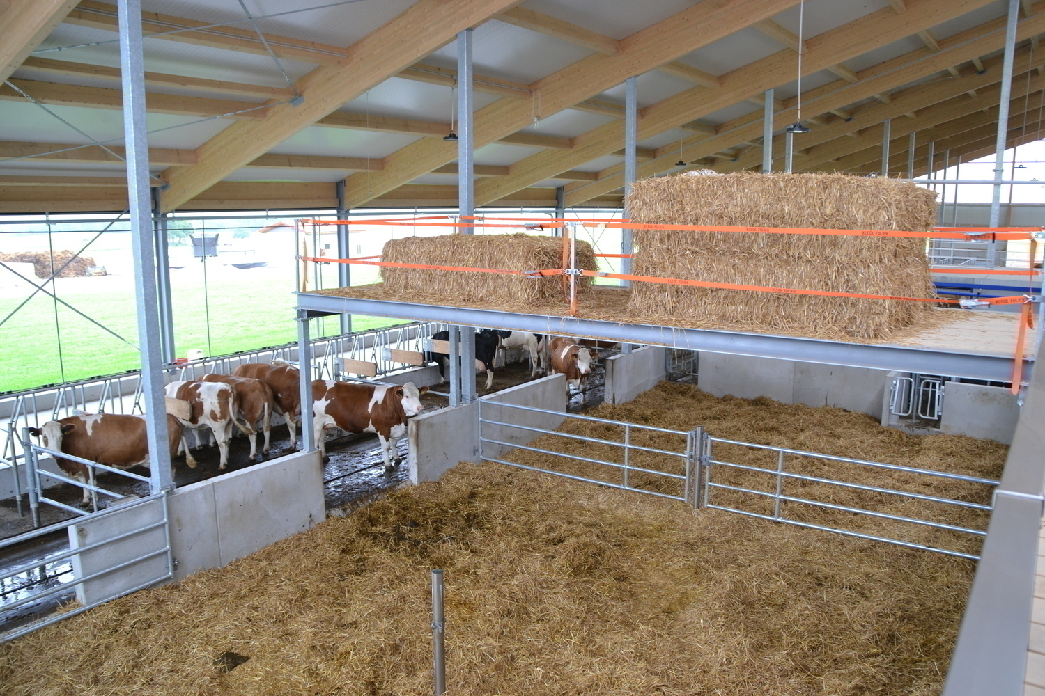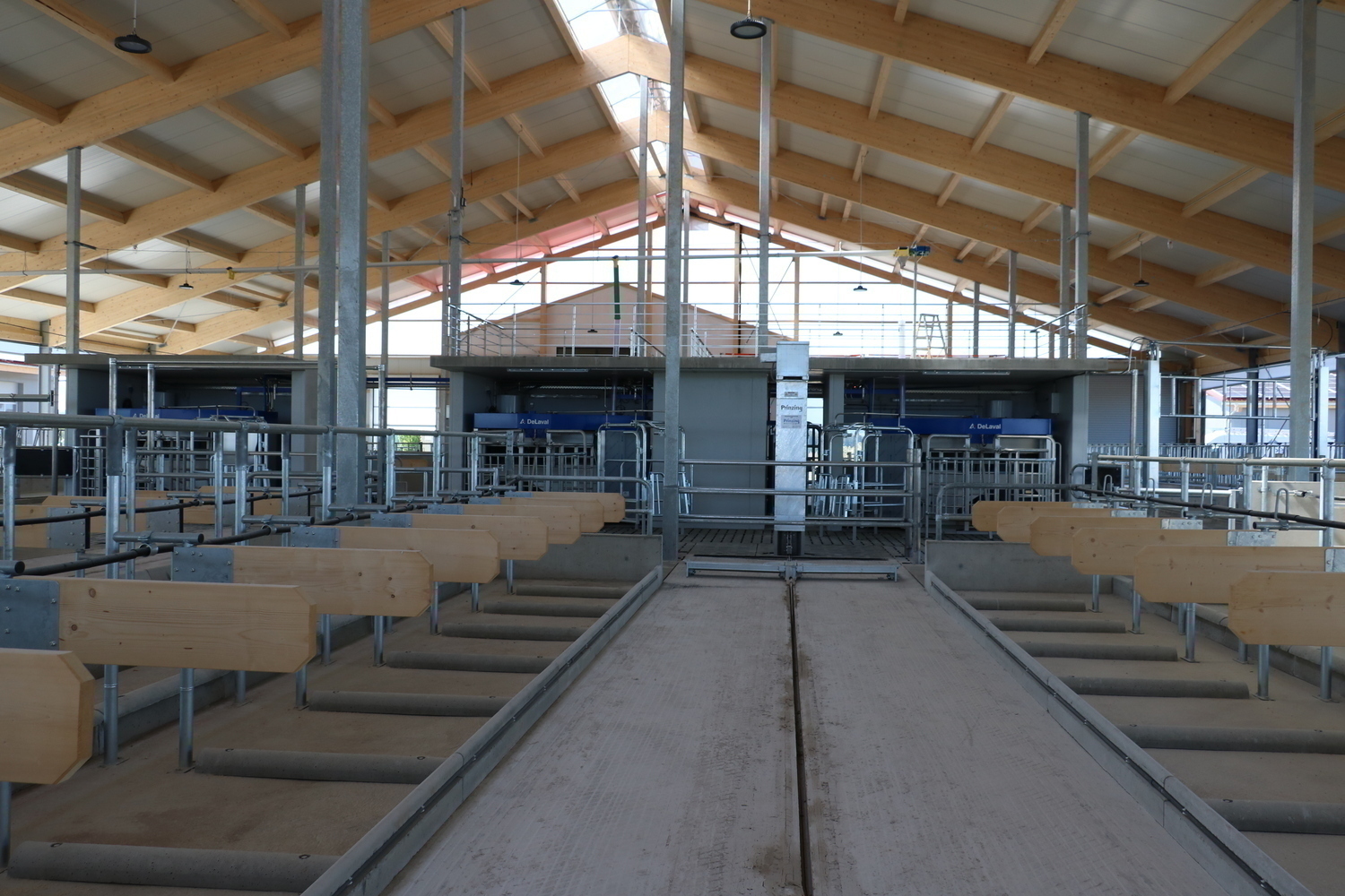 Einzugsbereiter Milchkuhstall - jetzt koennen die Tiefboxen mit Stroh eingestreut werden und die Tiere einziehen.
