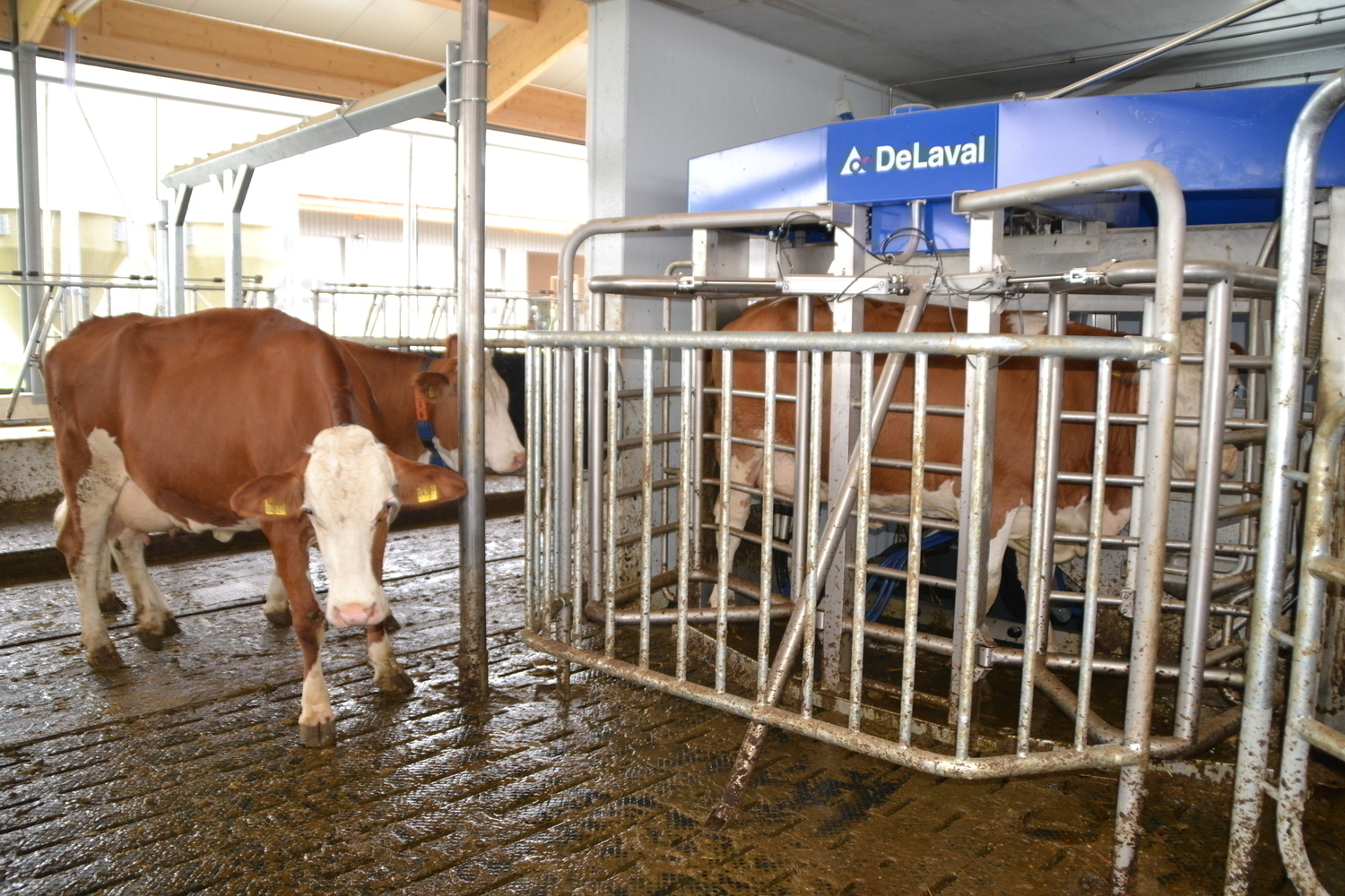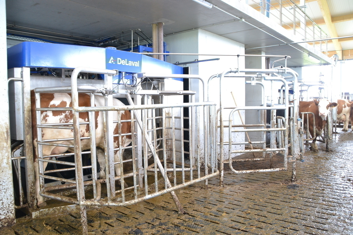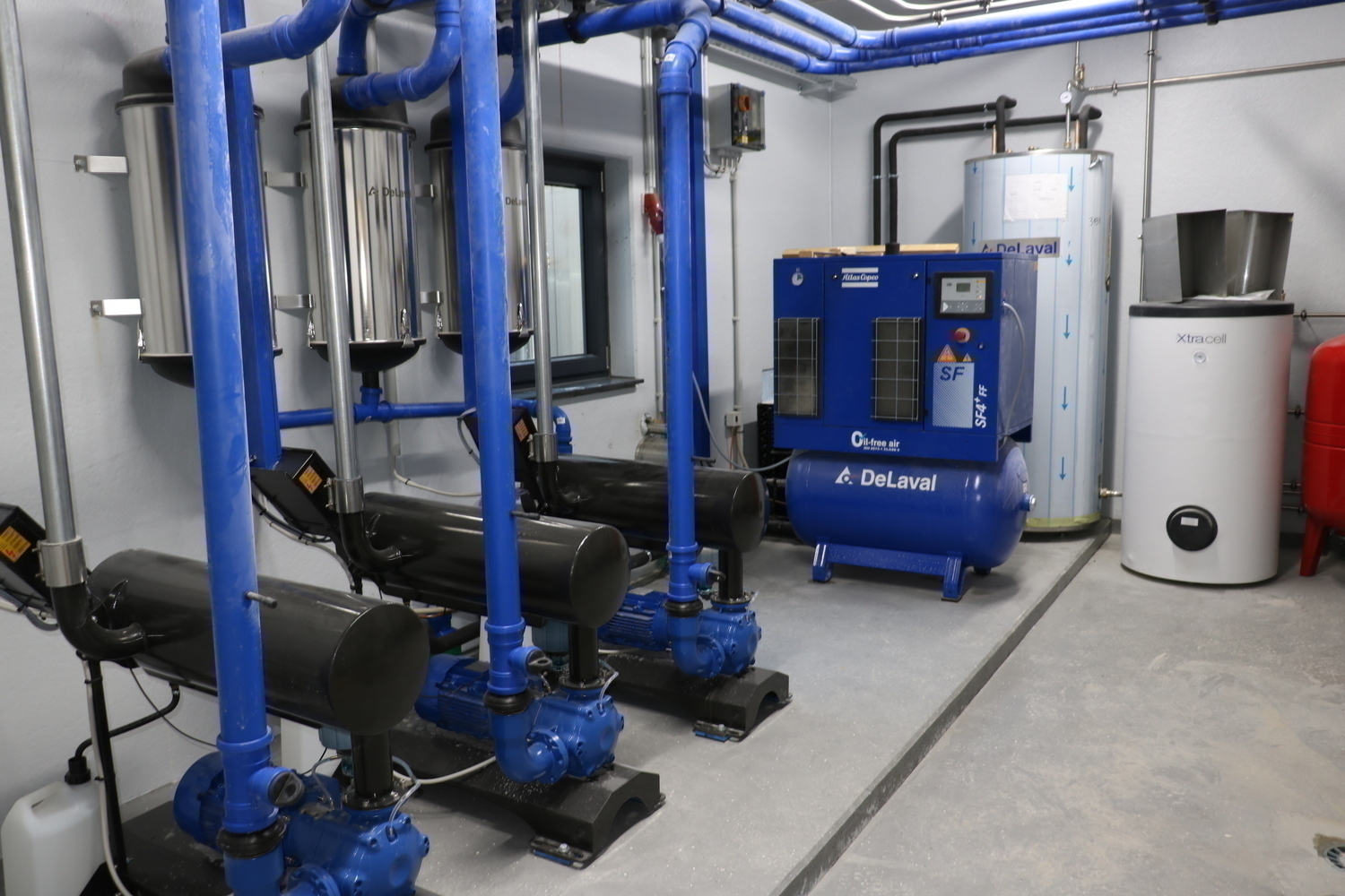 Technikraum fuer die drei Melkroboter von Delaval.