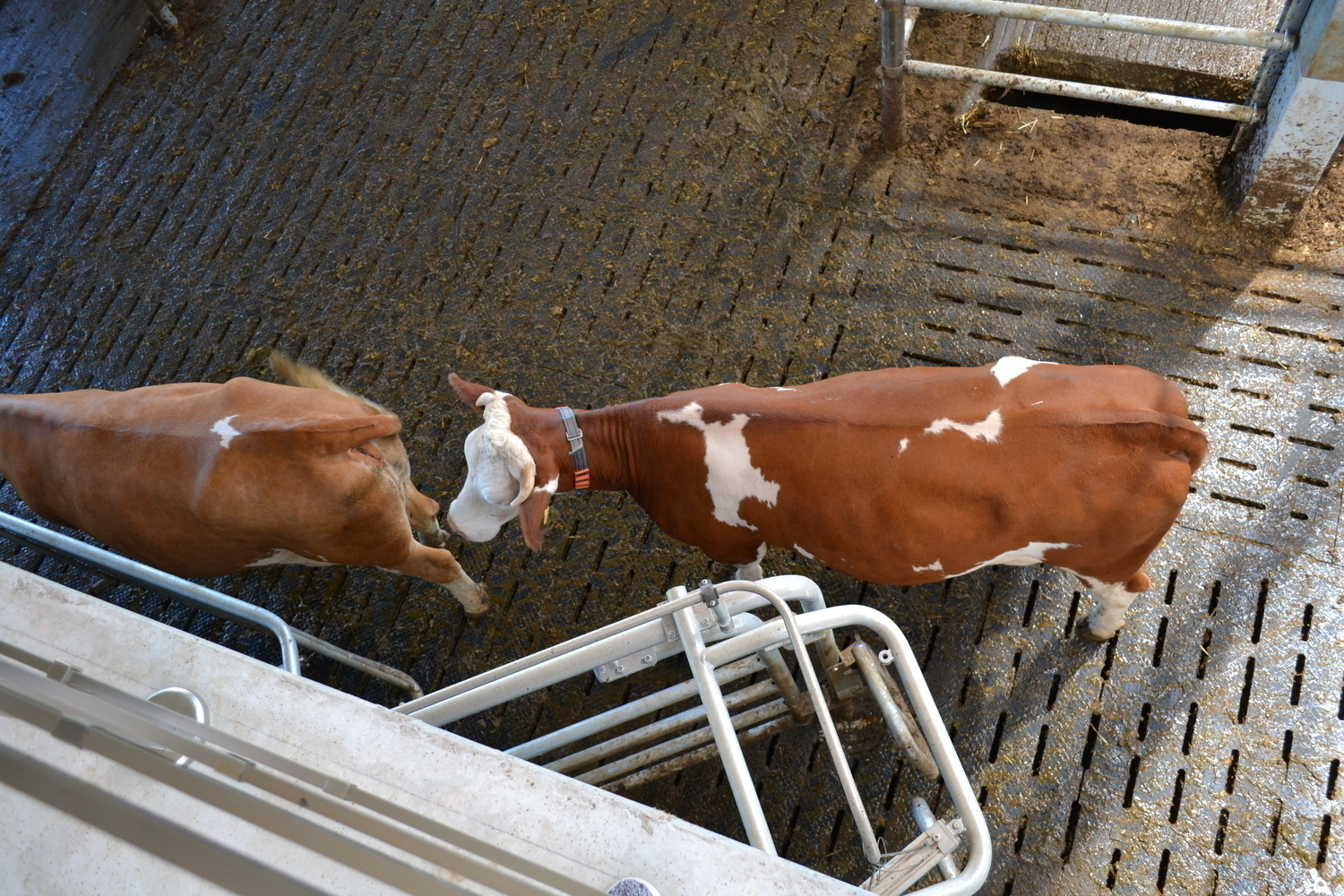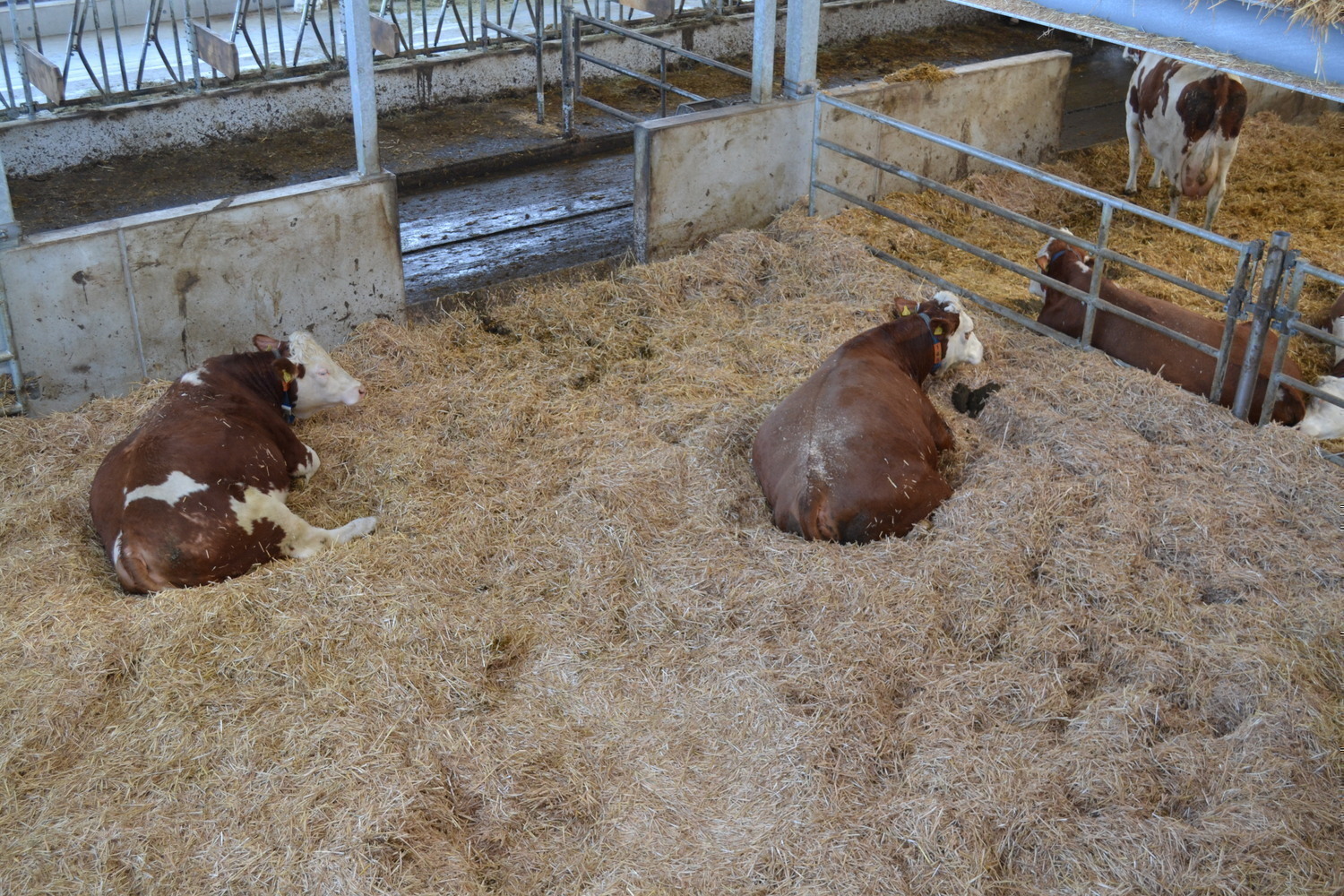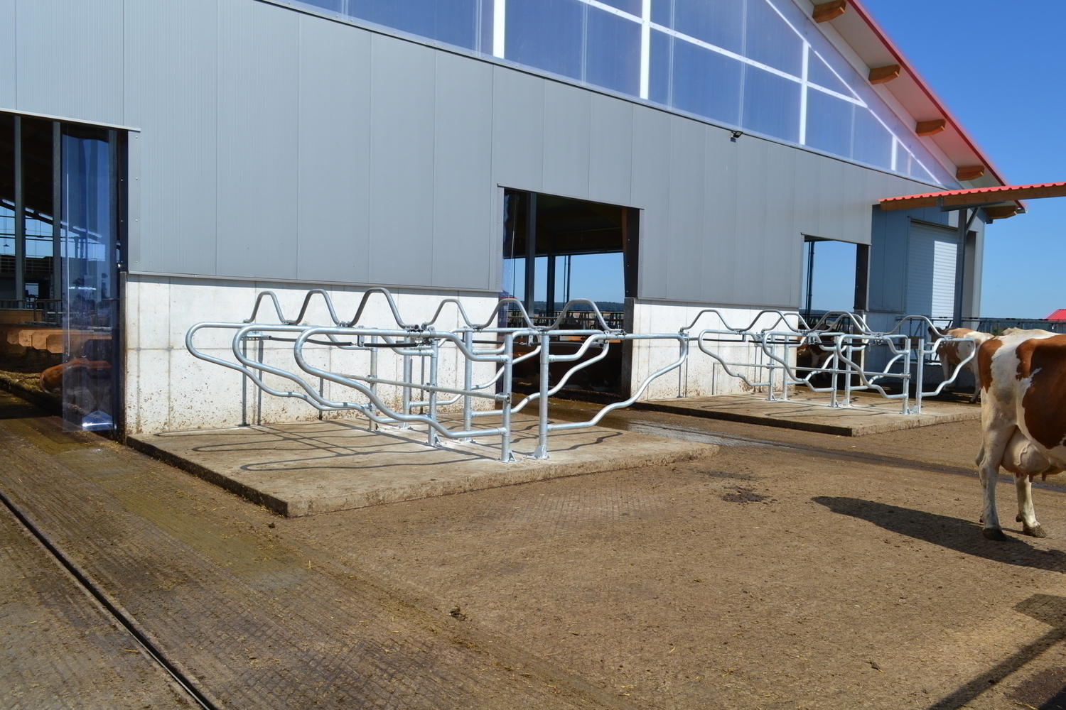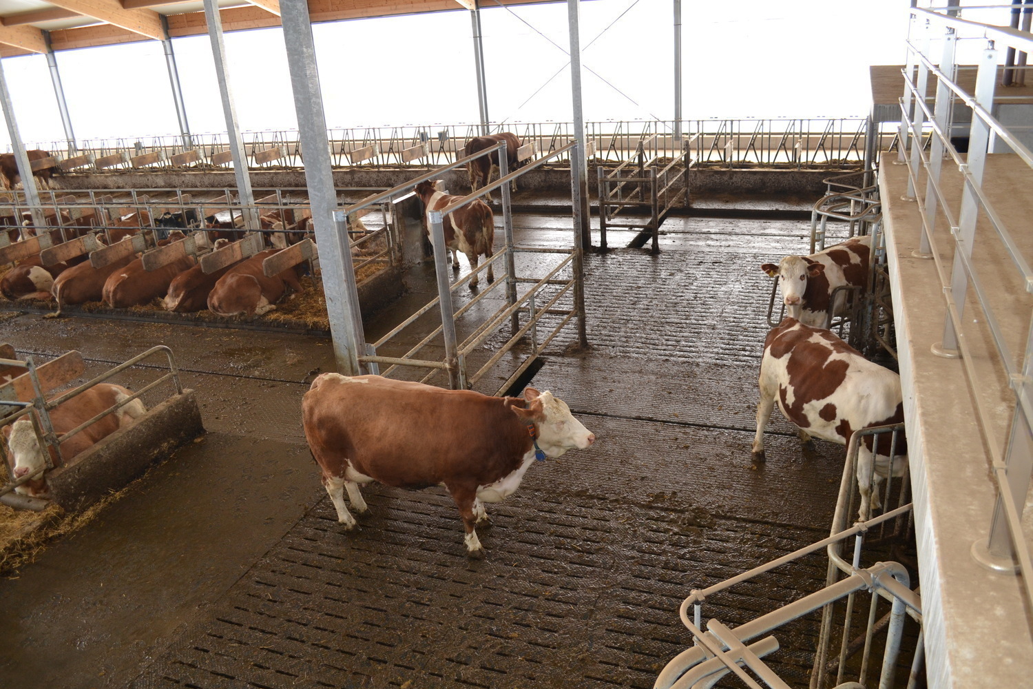 Der Laufhof wird zu Forschungszwecken abwechselnd mit und ohne Liegeboxen ausgefuehrt.
