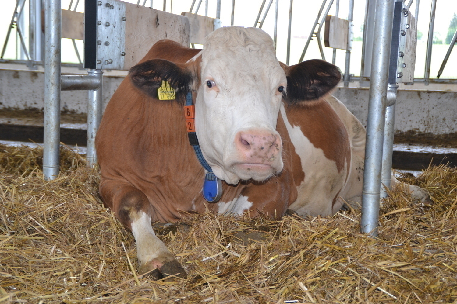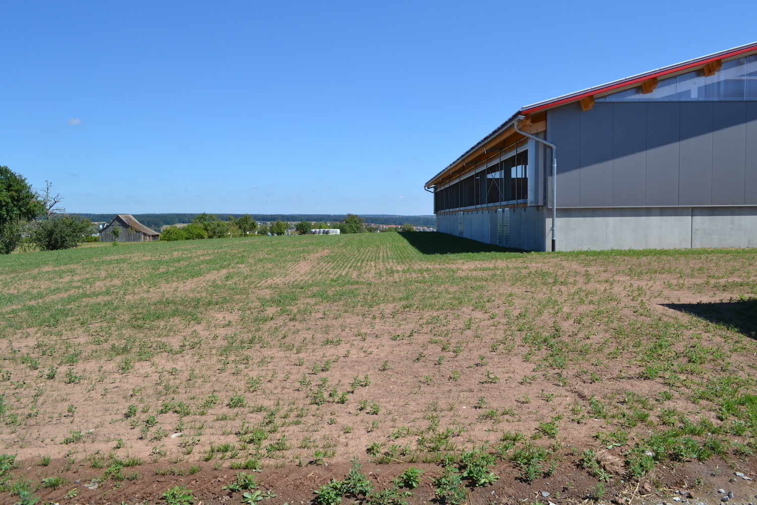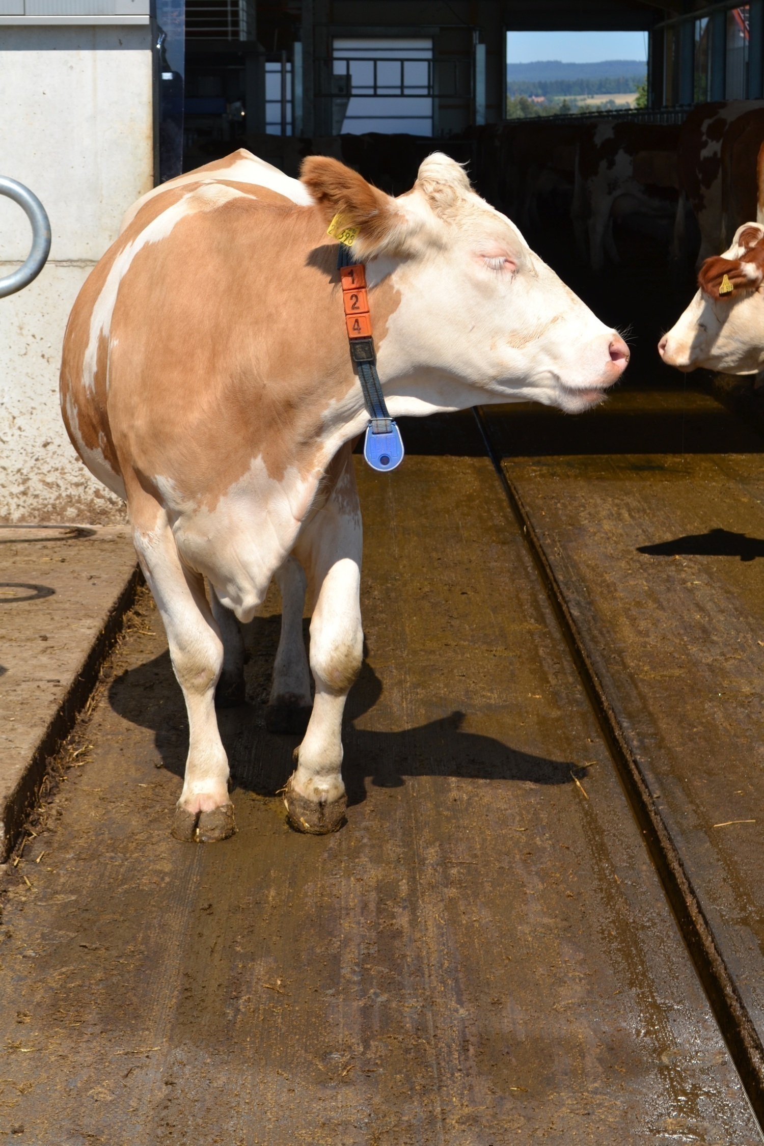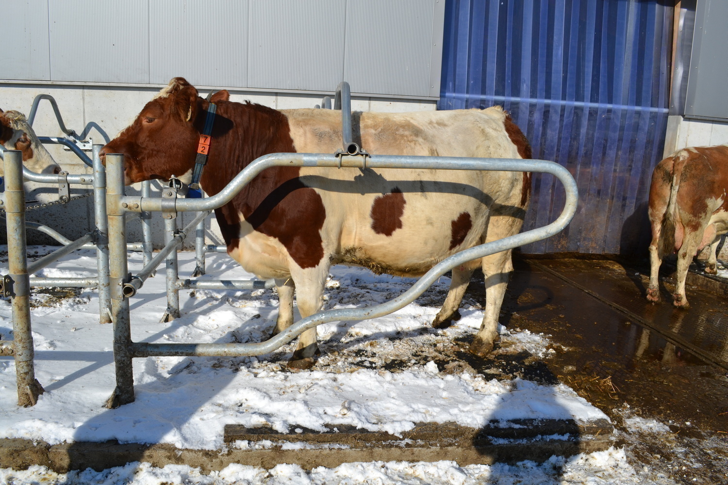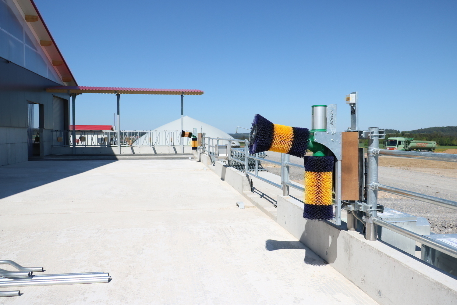Der Laufhof wird zu Forschungszwecken abwechselnd mit und ohne Liegeboxen ausgefuehrt.
