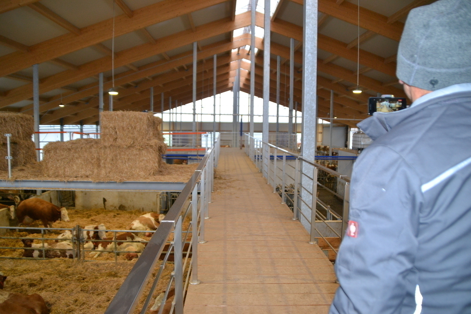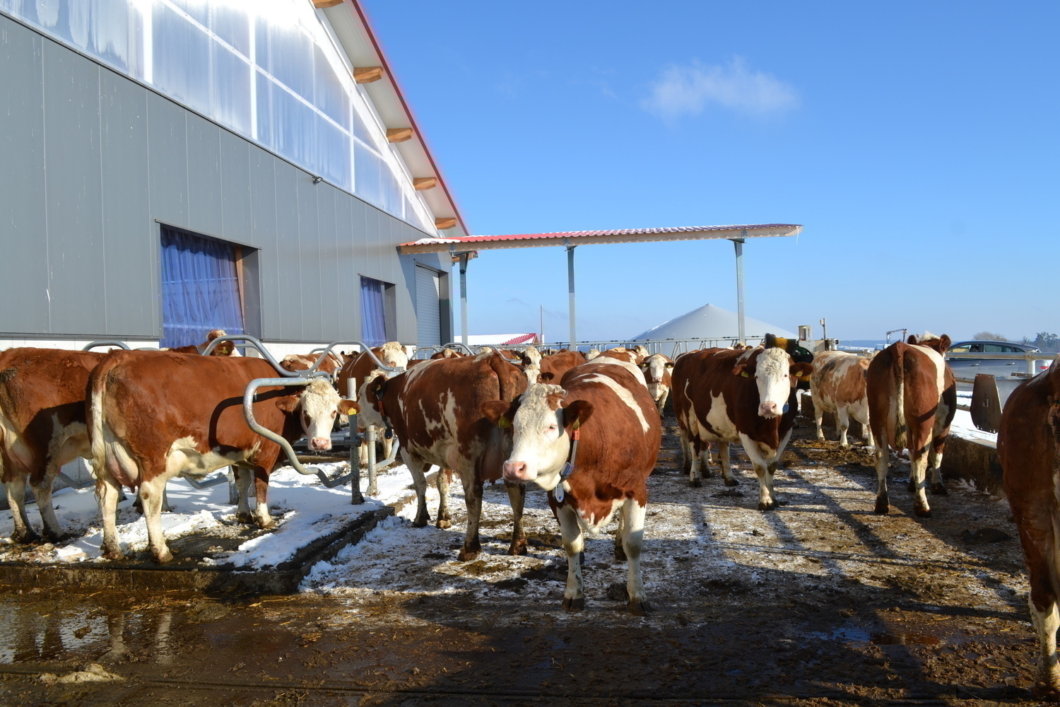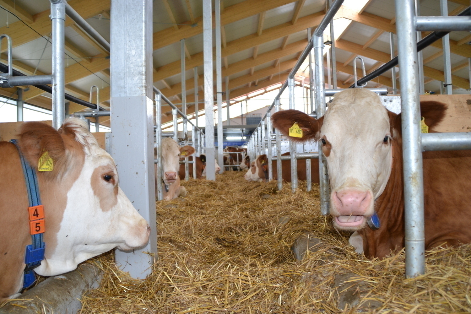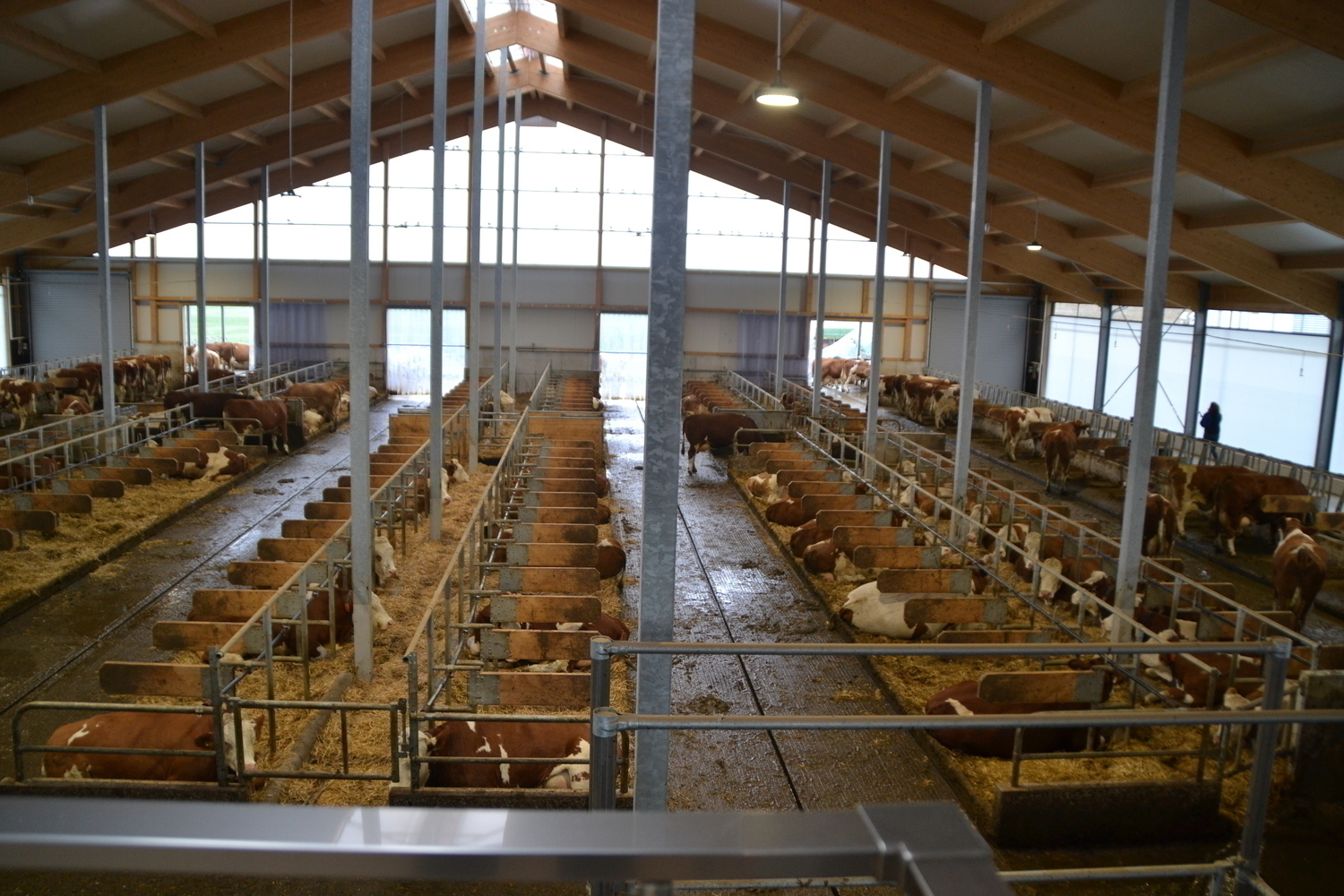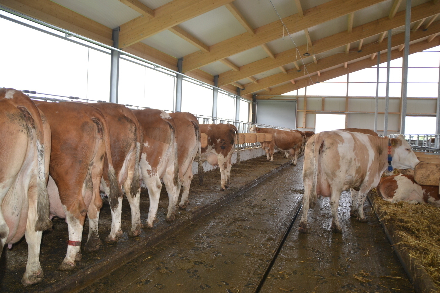 Wenige Wochen nach Einzug ist der Stall noch unterbelegt und die Kuehe haben Zeit fuer die Eingewoehnung