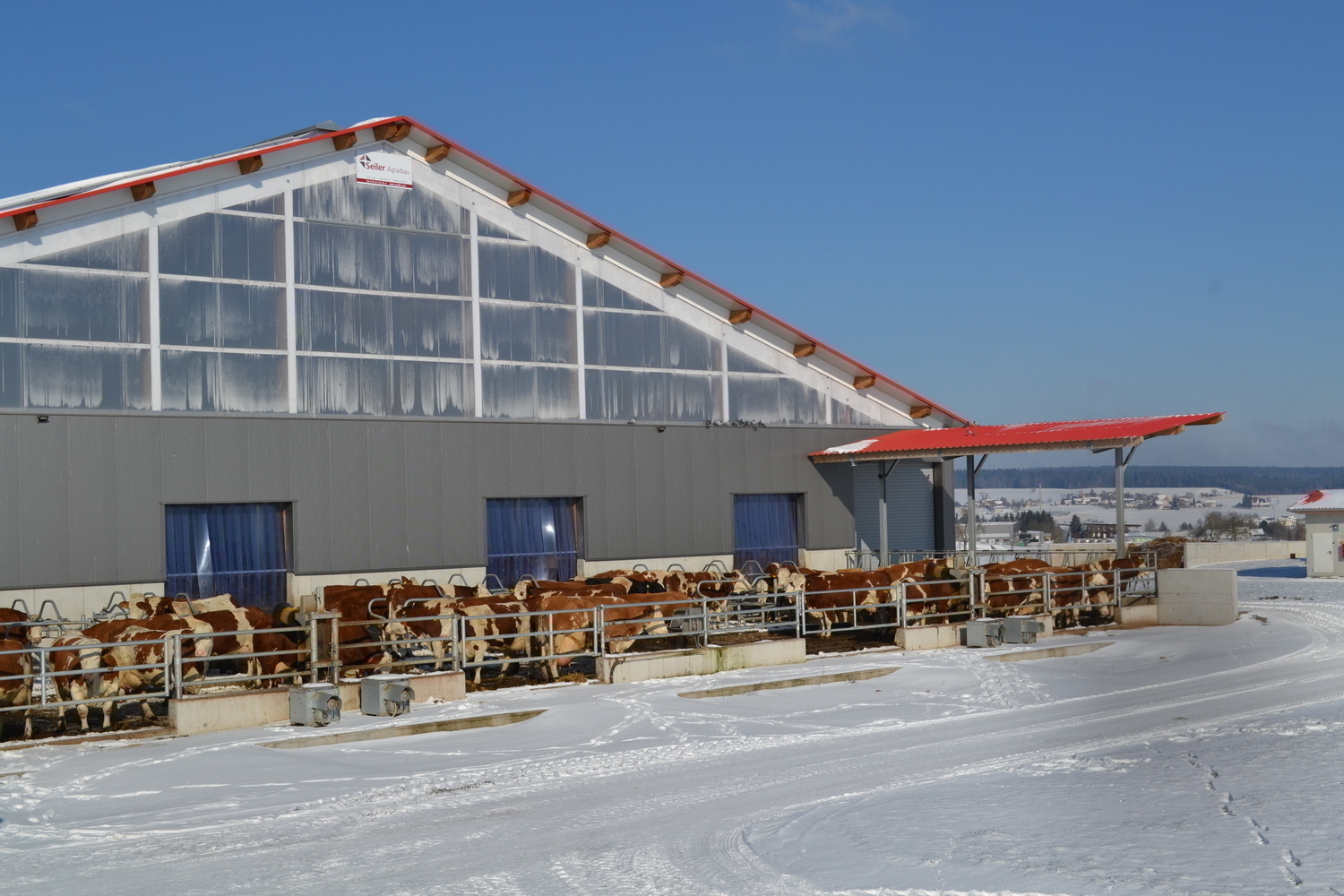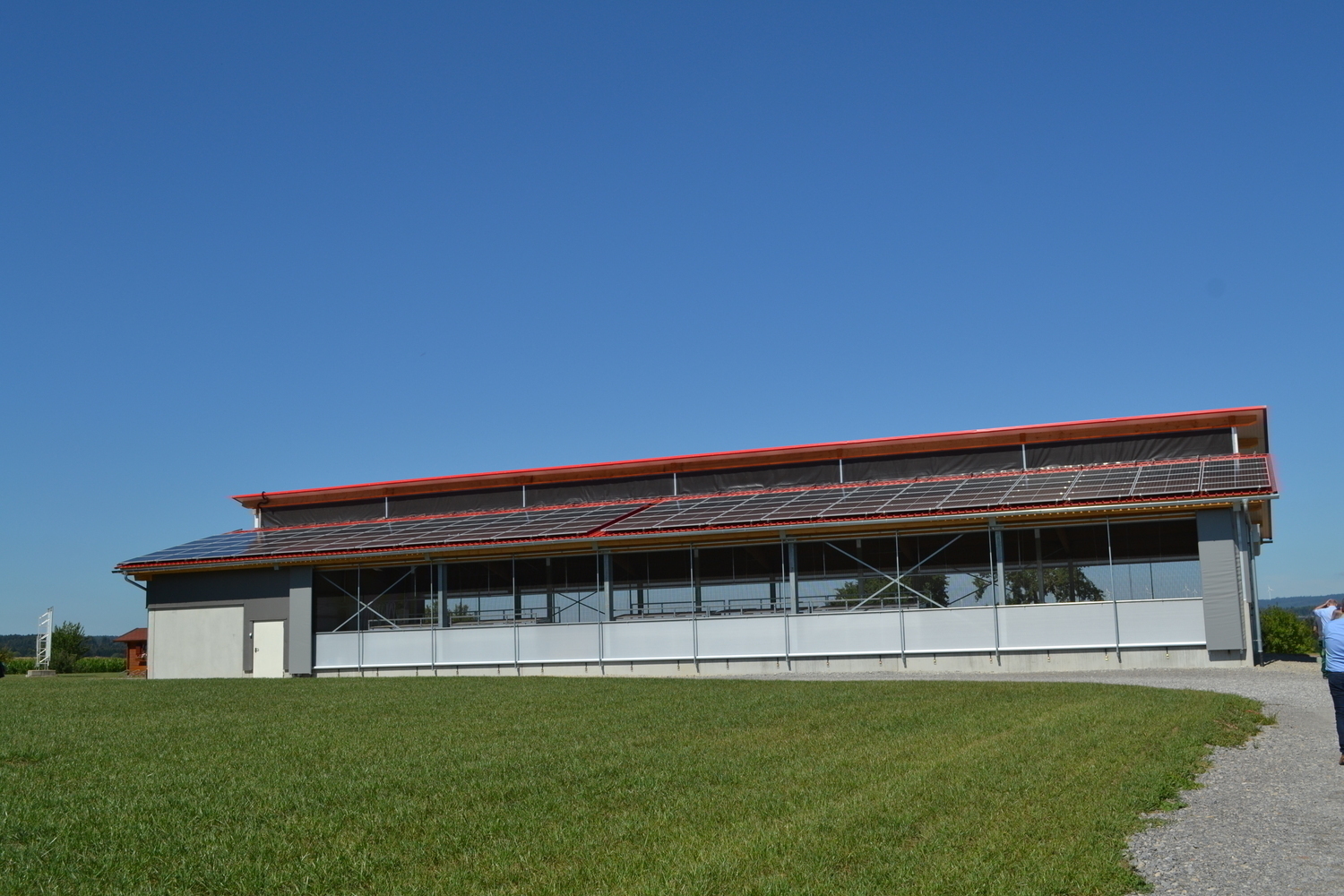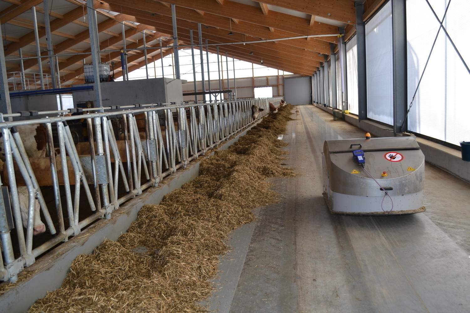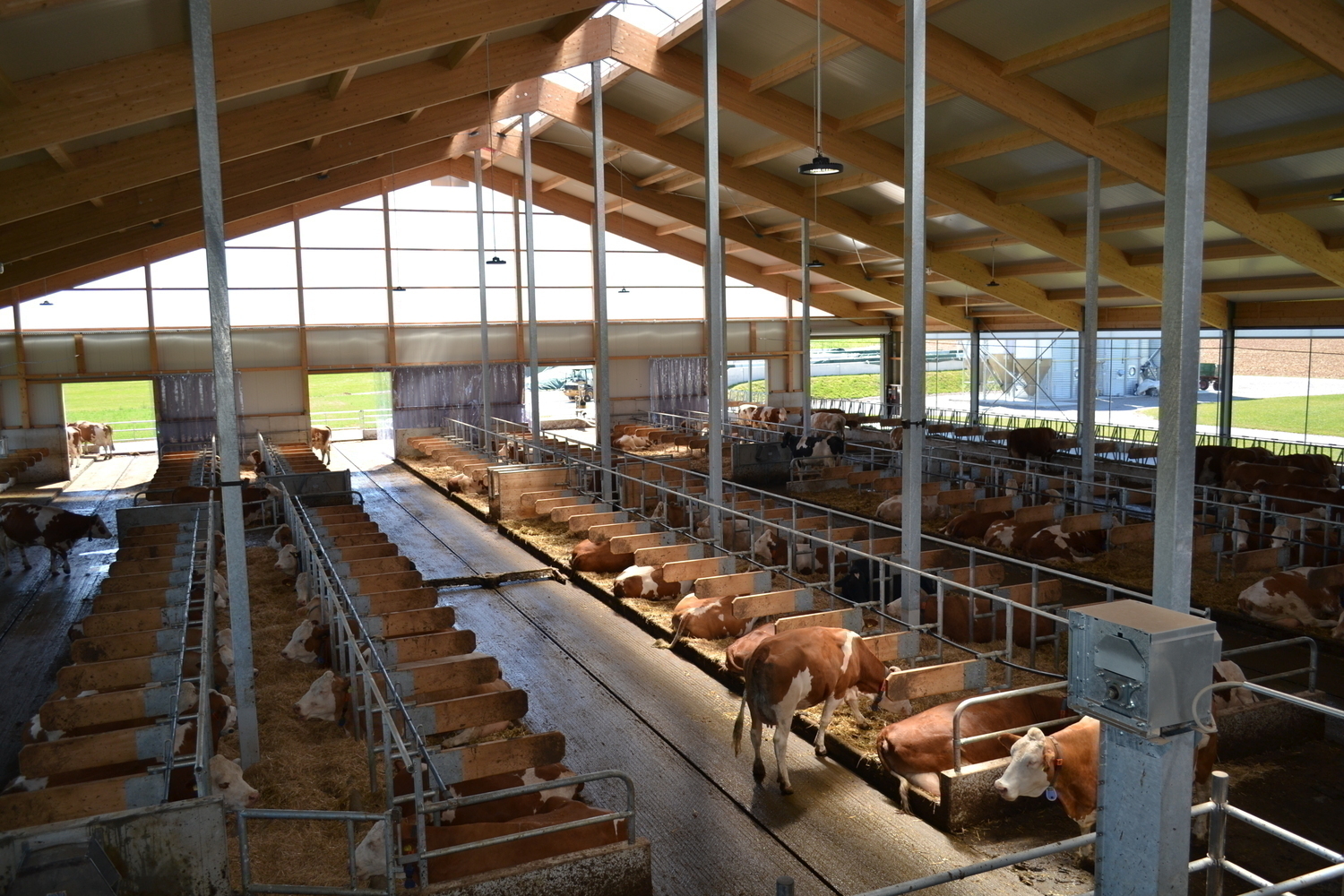 Der sechsreihige Stall hat zwei Aussenfuttertische.