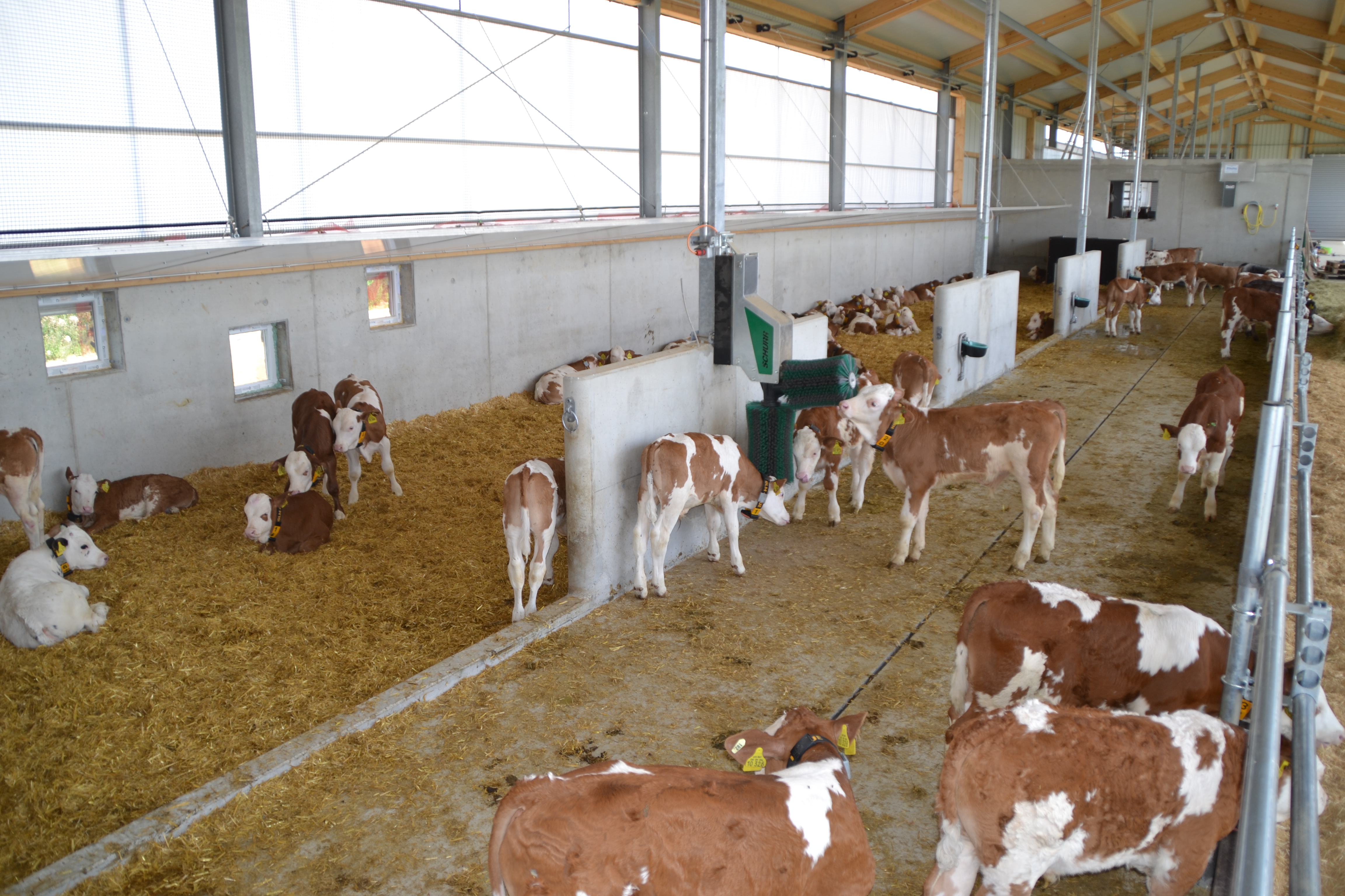 Das Bauvorhaben besteht aus drei Gebäuden mit je zwei Kälbergruppen. Insgesamt bieten die Ställe Platz für 360 Kälber. Die Zweiflächenbucht besteht aus einem Liegebereich auf Stroh mit Mikroklimadeckel und Wandheizung und einem Aktivitäts- und Fressbereich, der emissionsmindernd aufgeführt wurde und mit einem Schieber entmistet wird. An einem der Stallgebäude ist ein Laufhof angebaut der mit verschiedenen Beschäftigungsmaterialien ausgestattet ist.