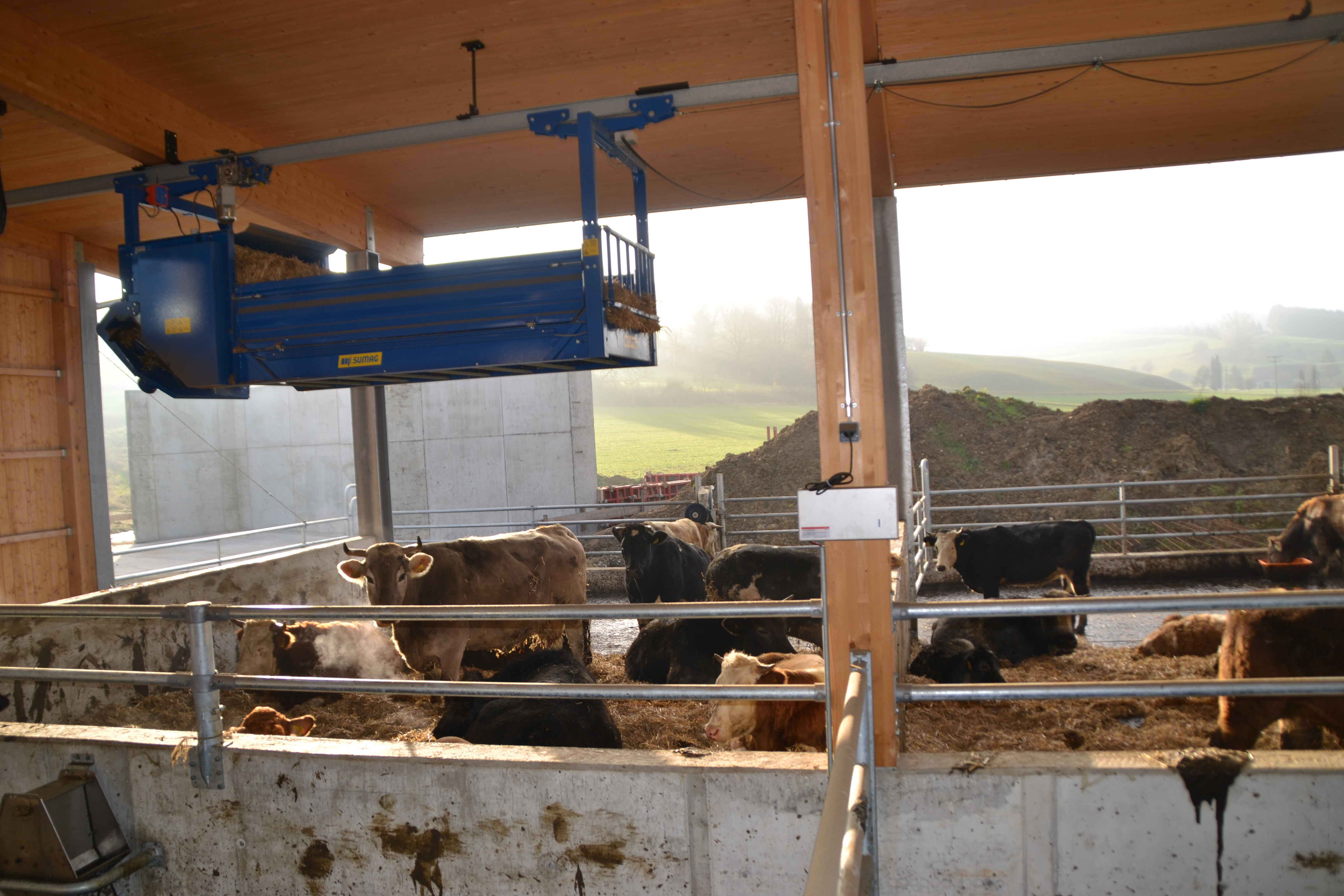 Im Boden verlegte Heizschlangen sollen im Winter verhindern, dass sich Glatteis bildet und der Laufhof/ Warteraum für die Kühe zur Rutschgefahr wird.